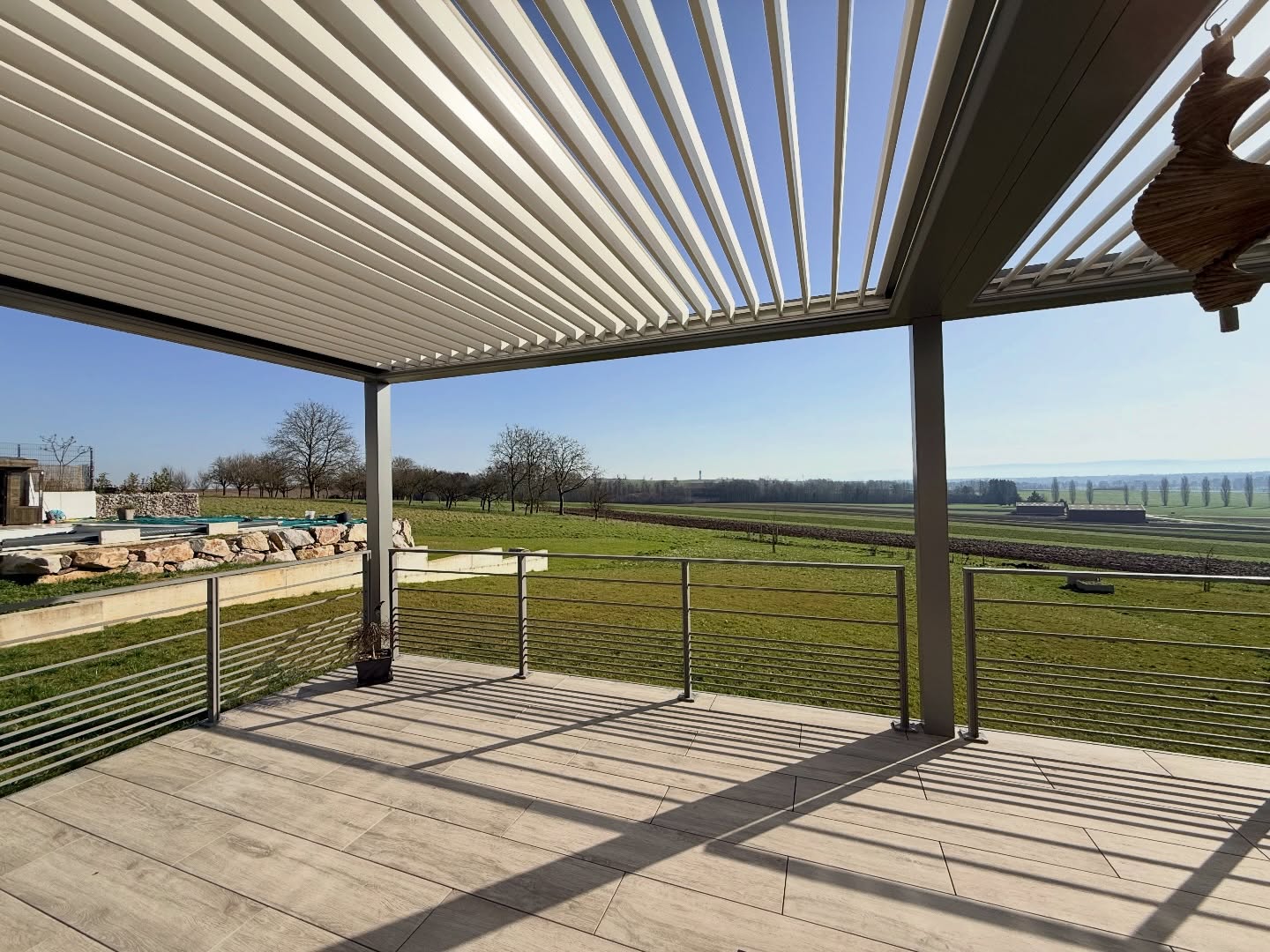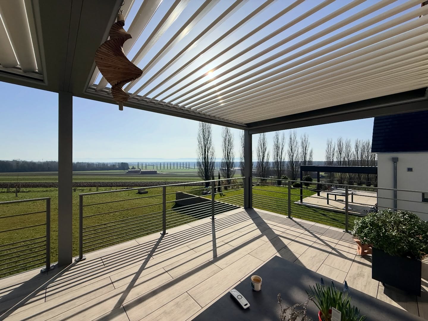 Ci spostiamo nel Basso Reno, a Buhl, per scoprire questa splendida terrazza di una villa contemporanea. L’obiettivo era chiaro: rivestire i volumi minimalisti della casa con un materiale accogliente, in grado di esaltare la vista aperta sulla campagna alsaziana.