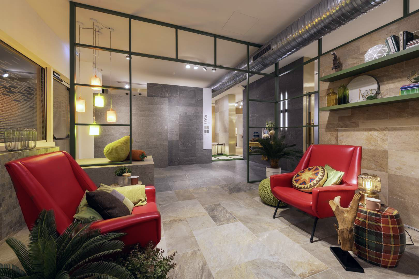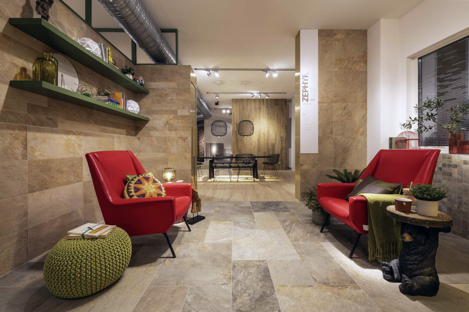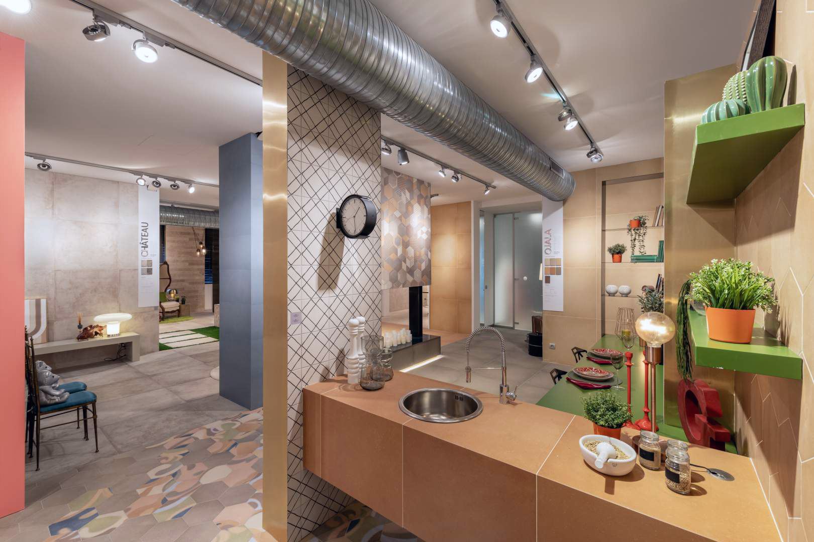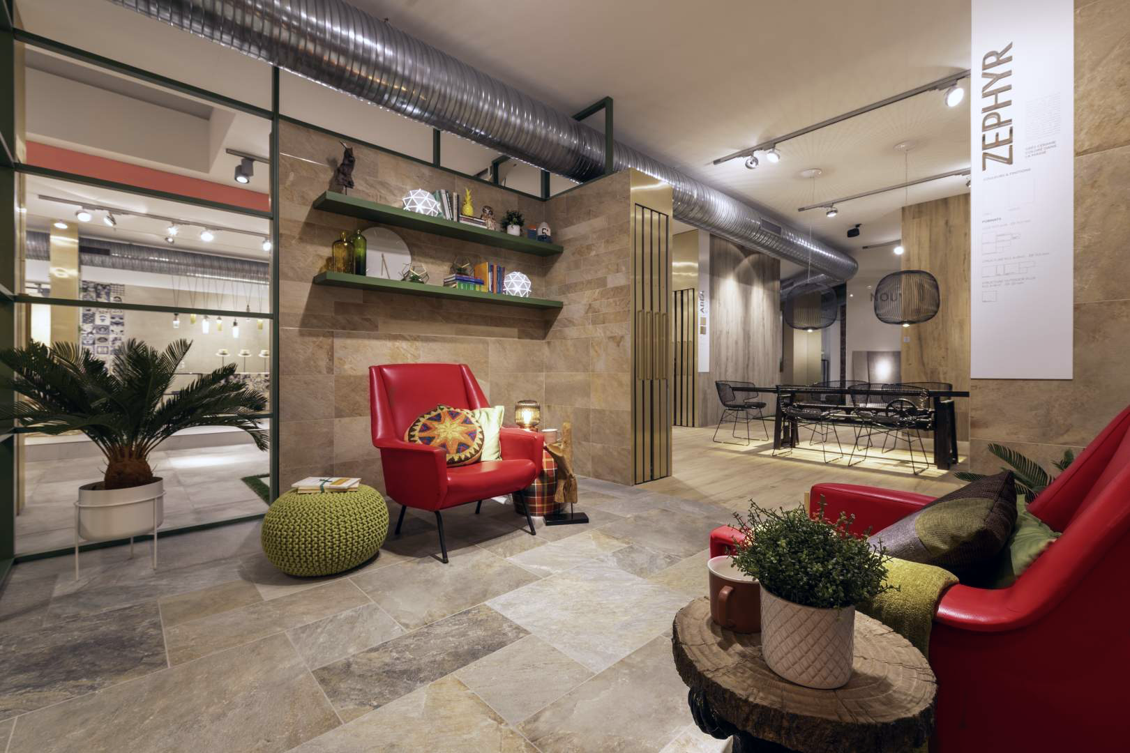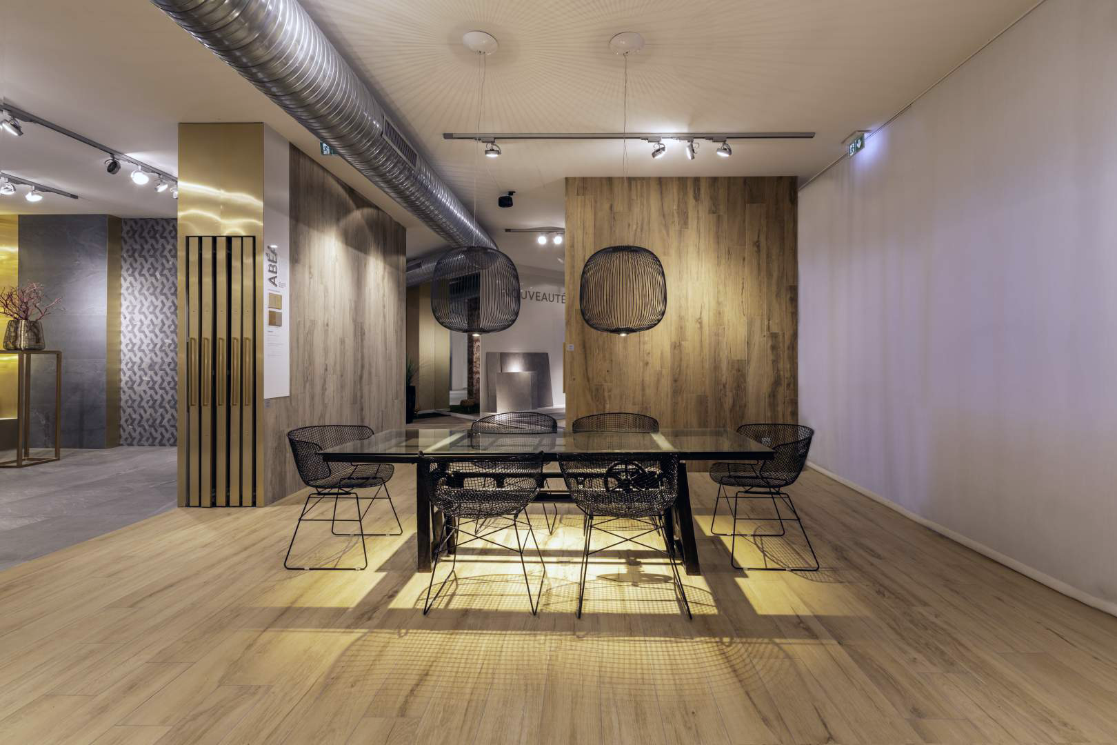 Showroom, auditorium e aule di formazione: un affascinante spazio polivalente dedicato al design e alla ceramica nel complesso produttivo di Saint Vallier-sur-Rhône.
