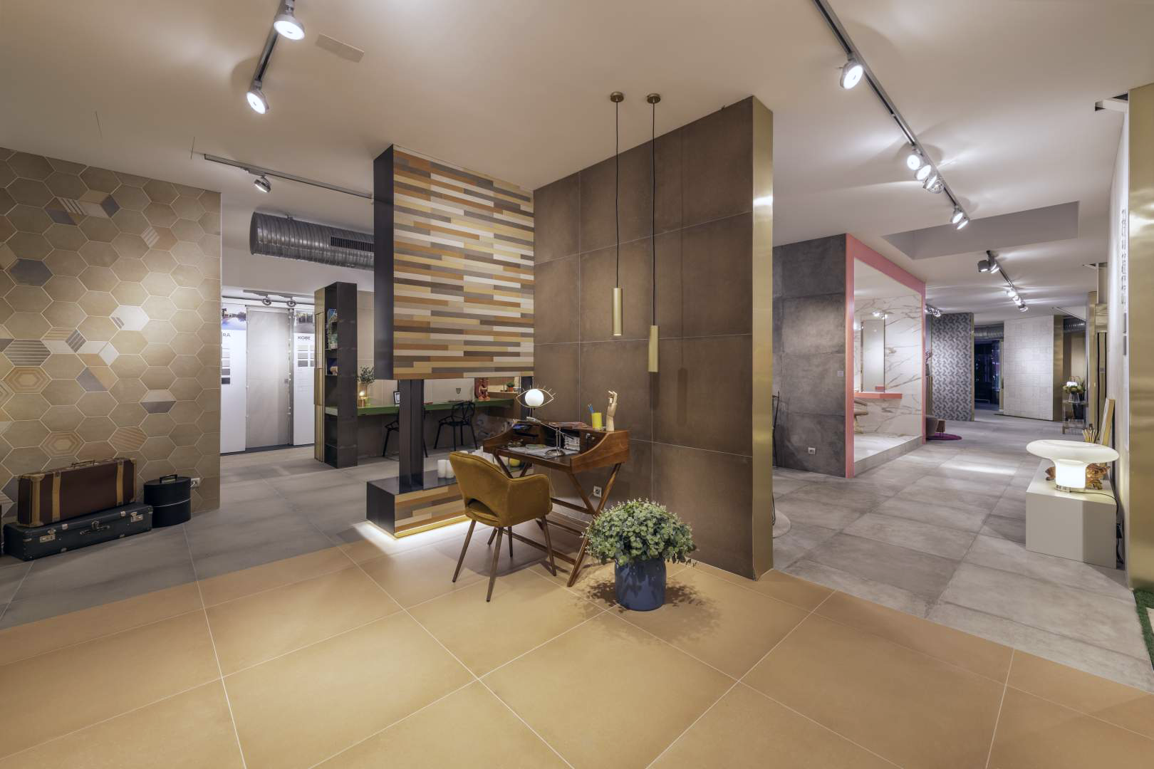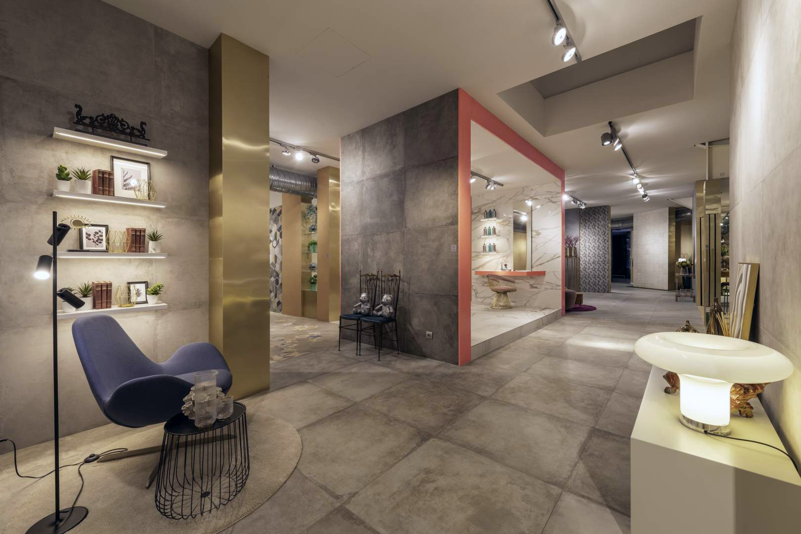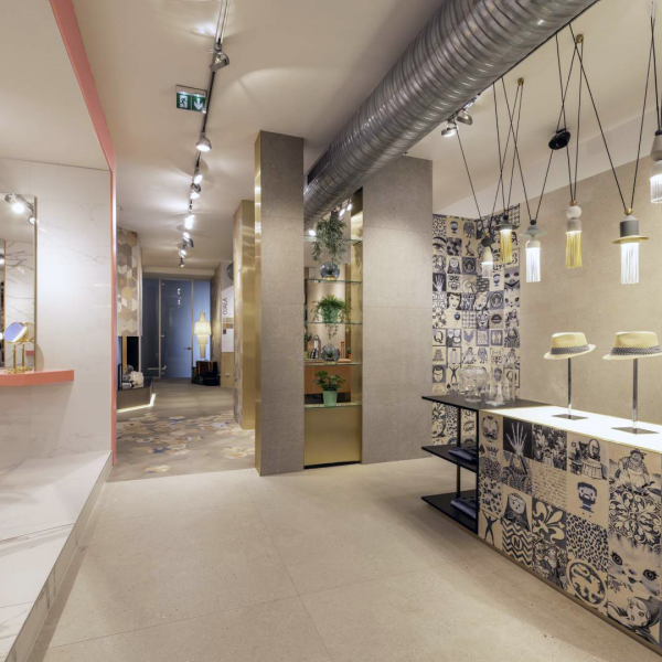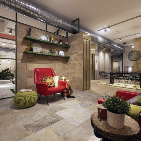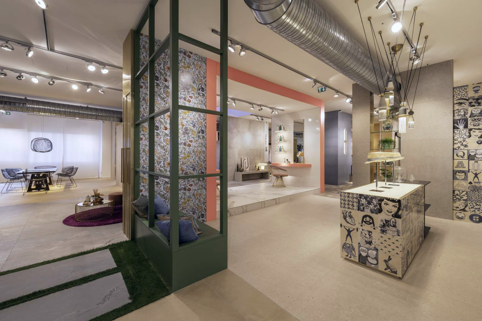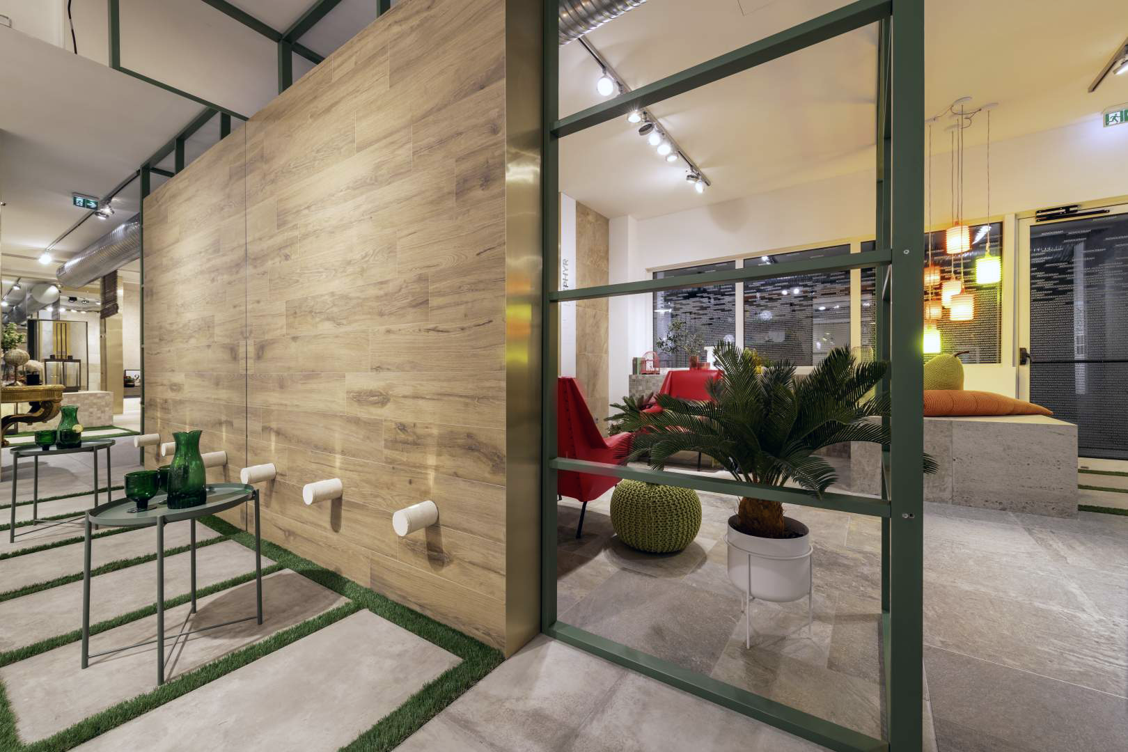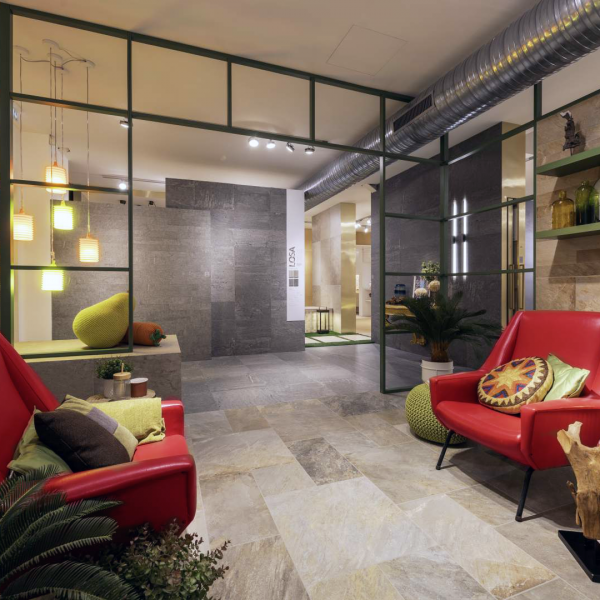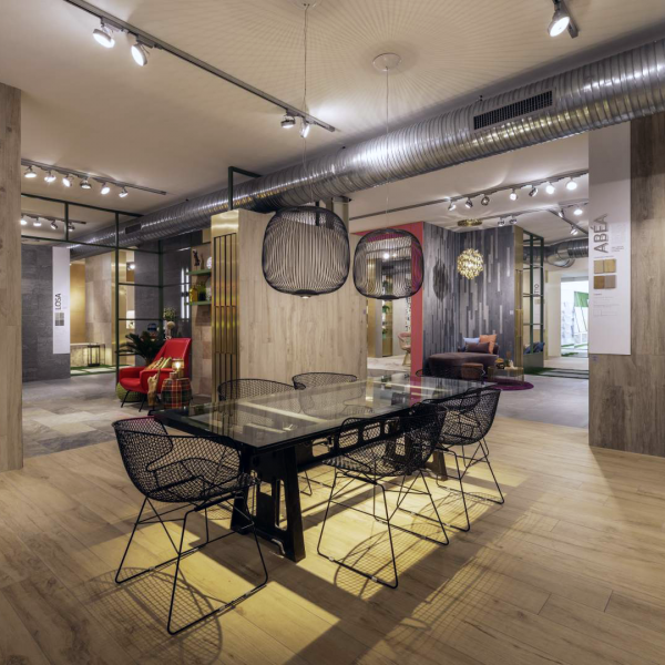 Showroom, auditorium e aule di formazione: un affascinante spazio polivalente dedicato al design e alla ceramica nel complesso produttivo di Saint Vallier-sur-Rhône.