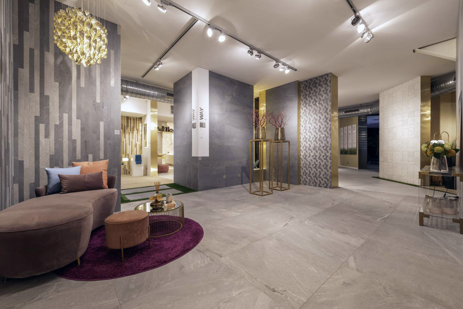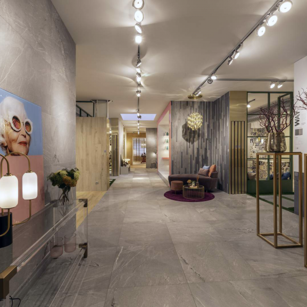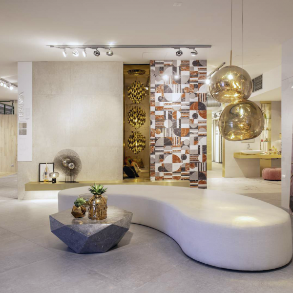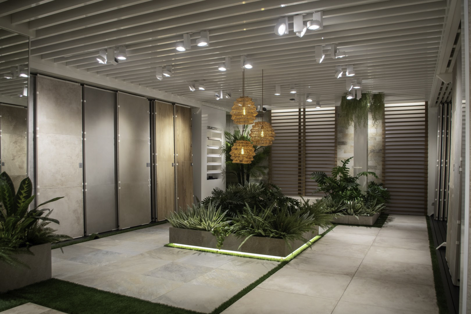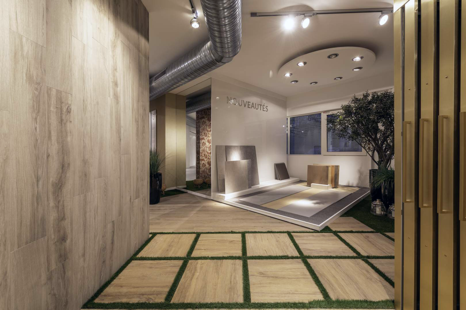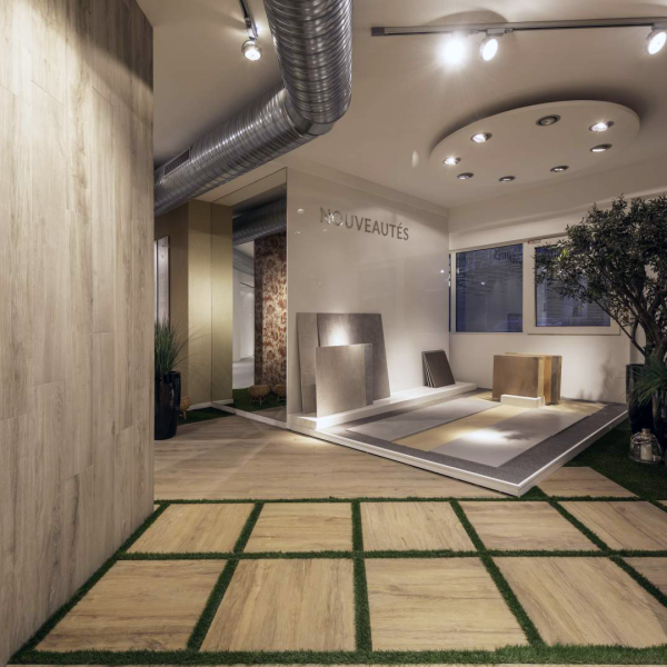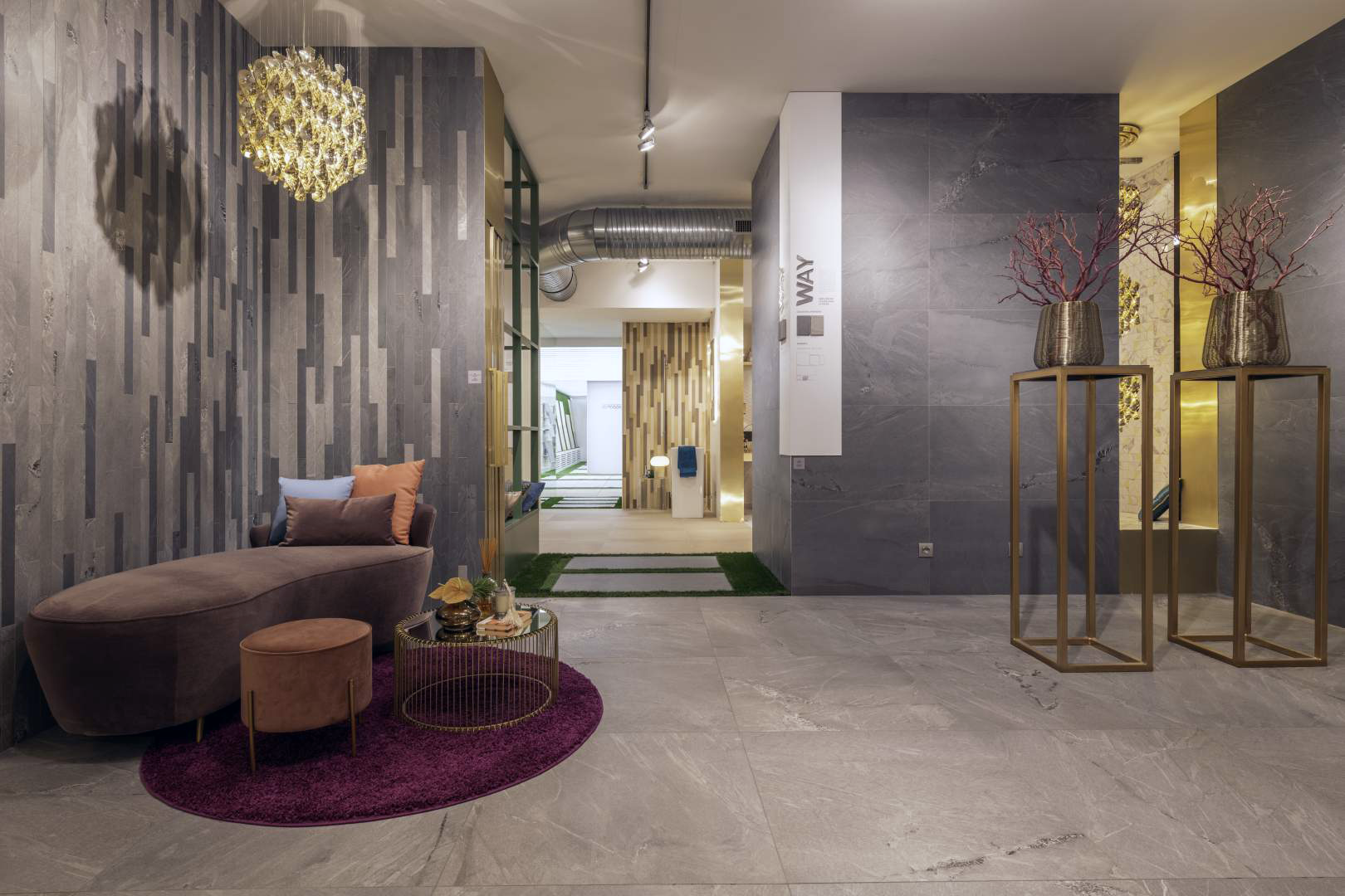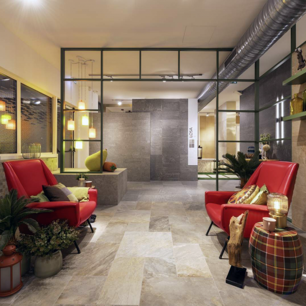 Showroom, auditorium e aule di formazione: un affascinante spazio polivalente dedicato al design e alla ceramica nel complesso produttivo di Saint Vallier-sur-Rhône.