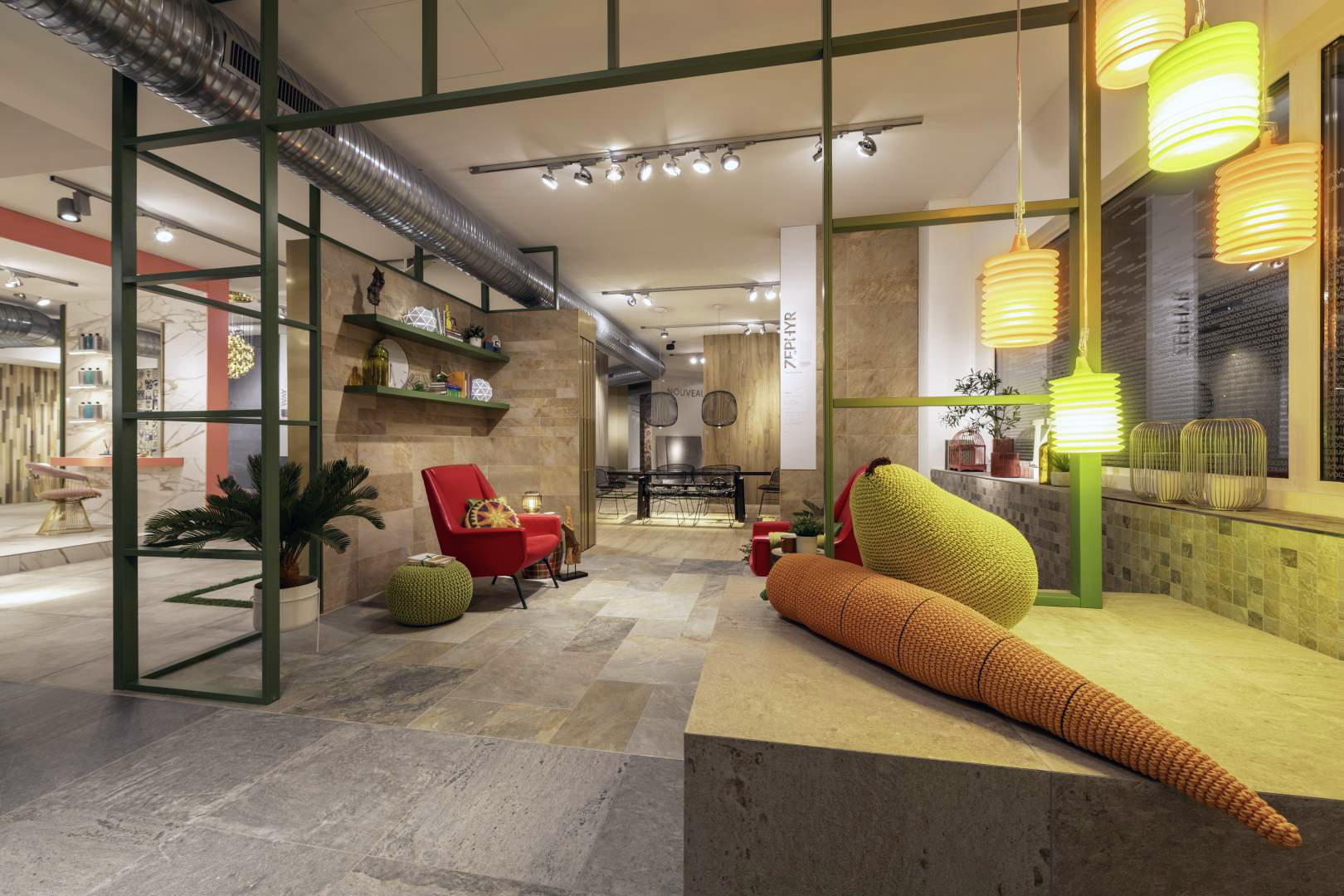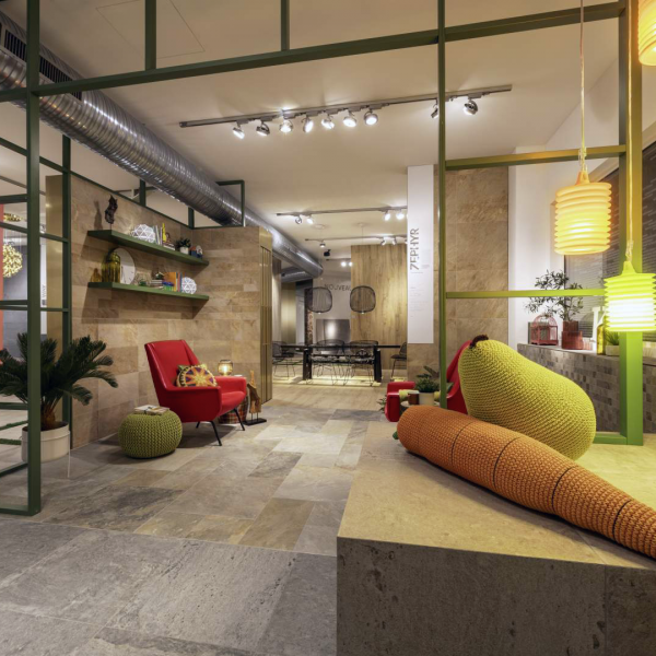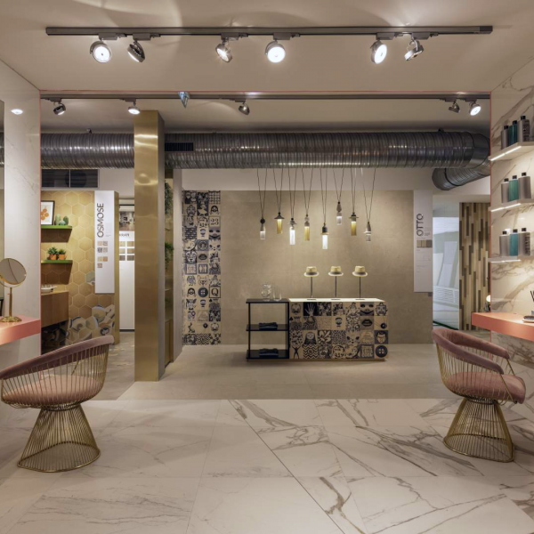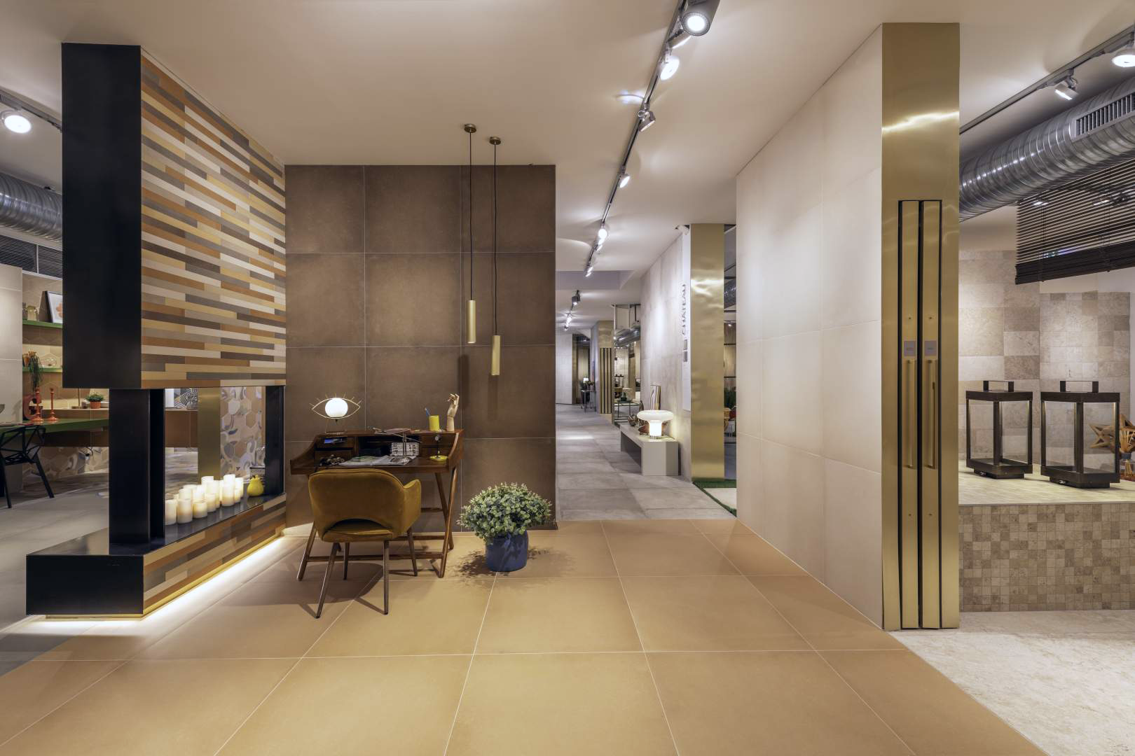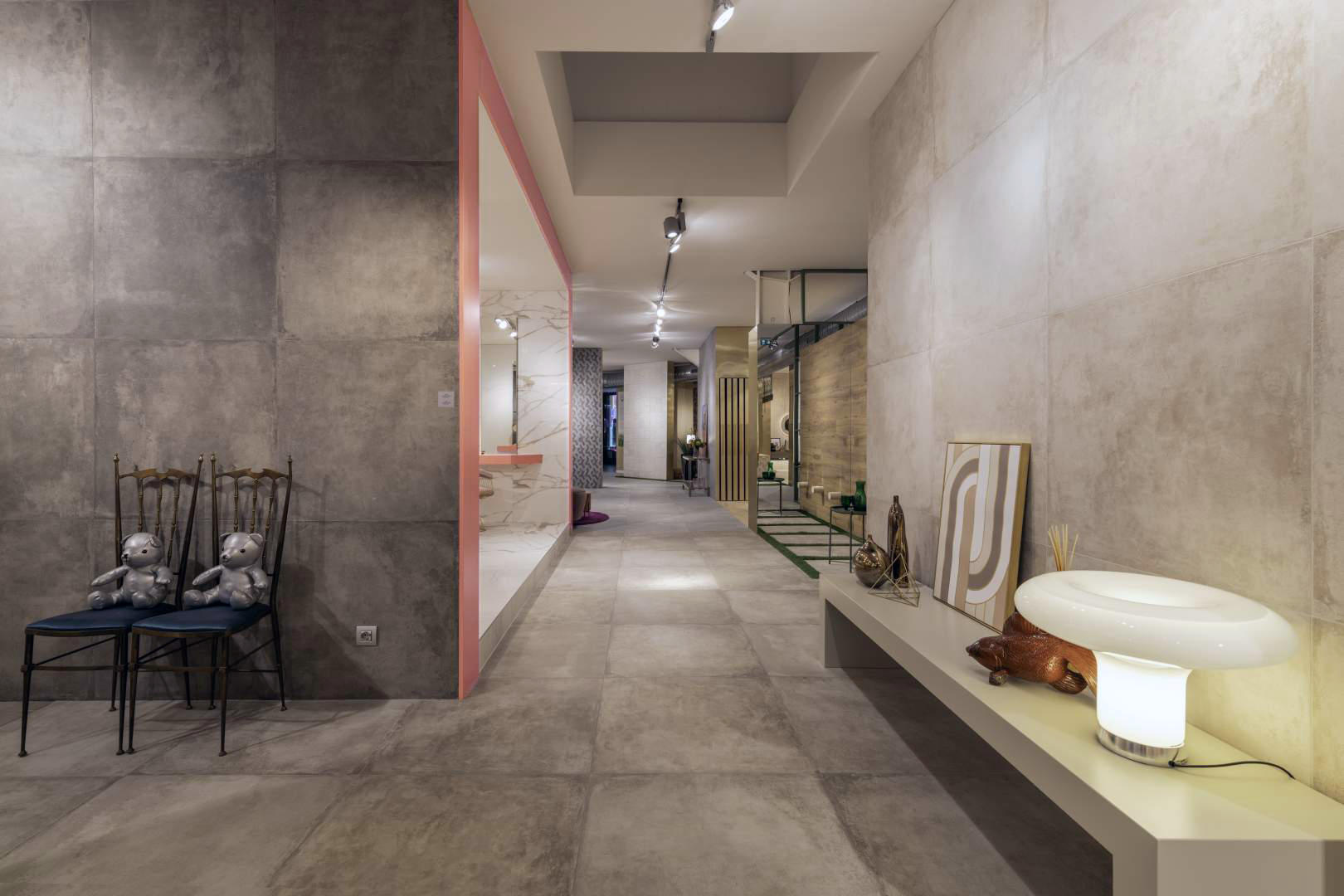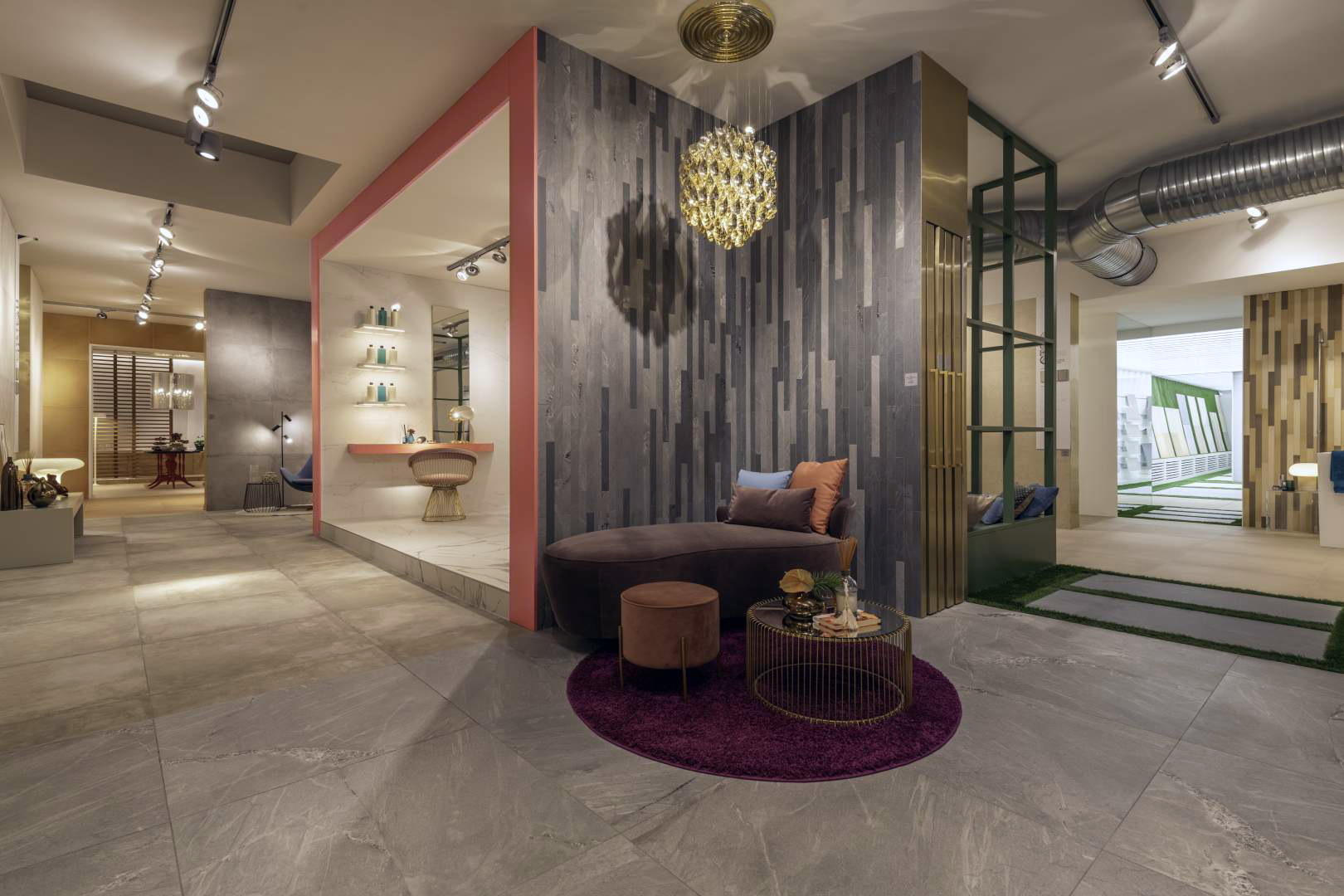 Showroom, auditorium e aule di formazione: un affascinante spazio polivalente dedicato al design e alla ceramica nel complesso produttivo di Saint Vallier-sur-Rhône.