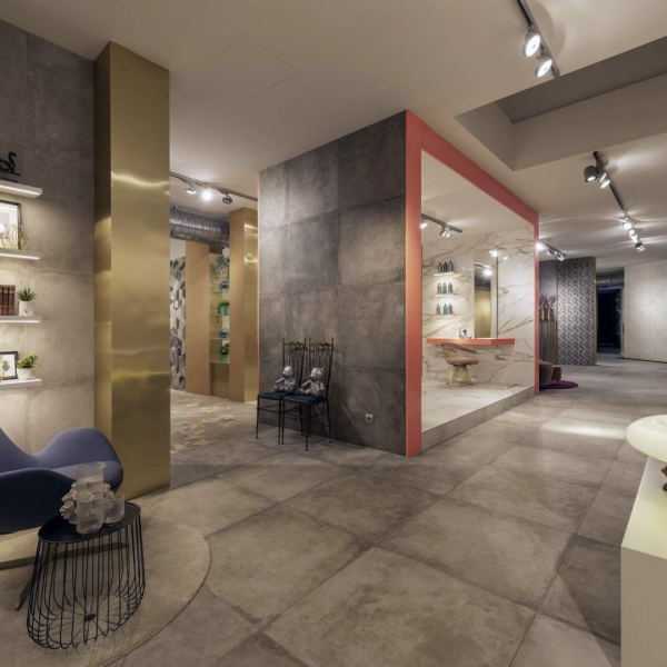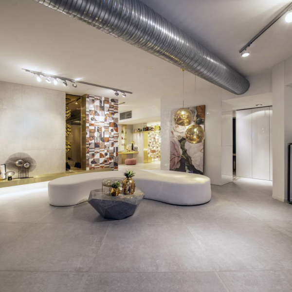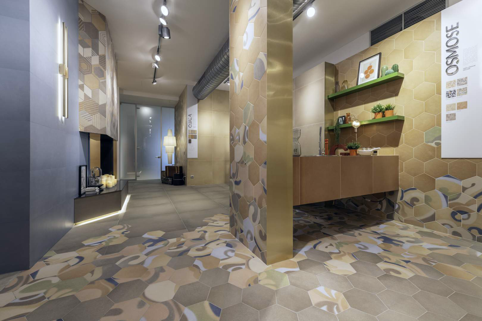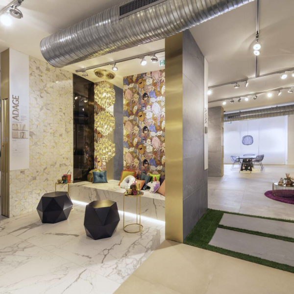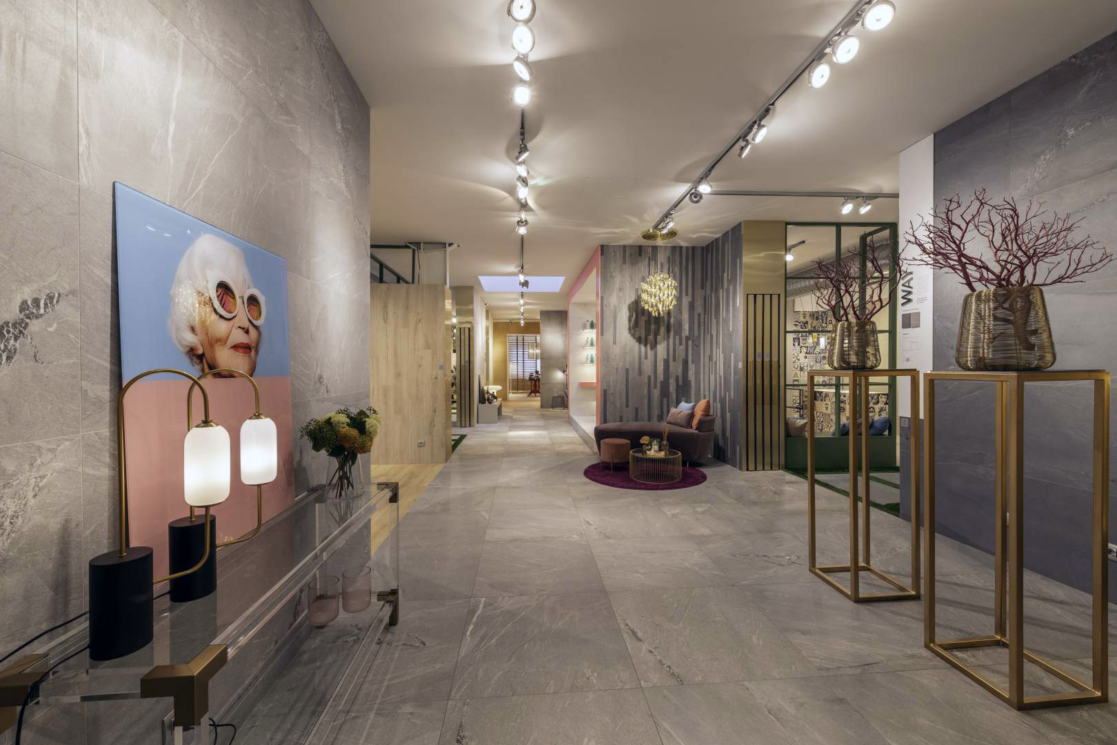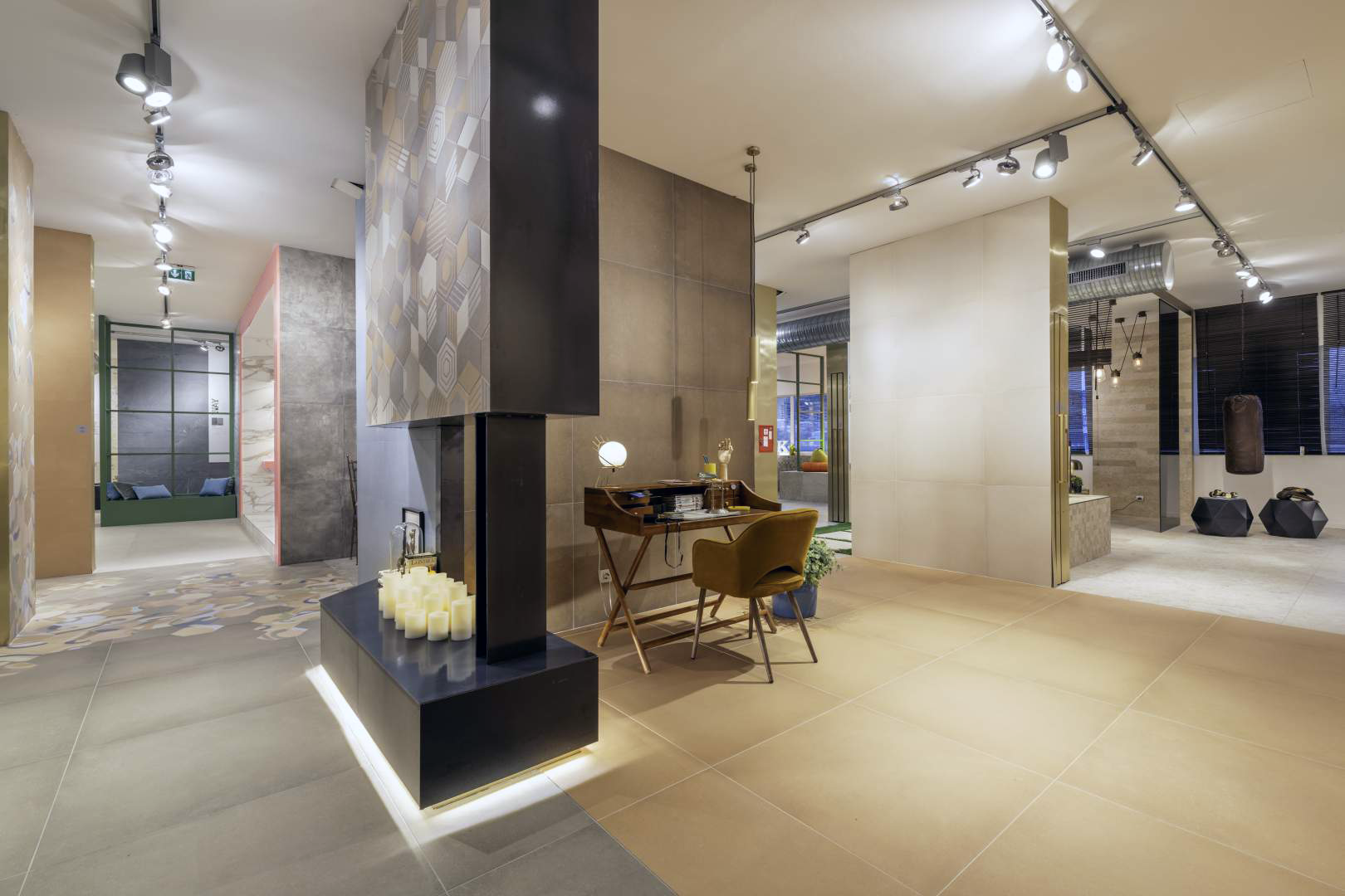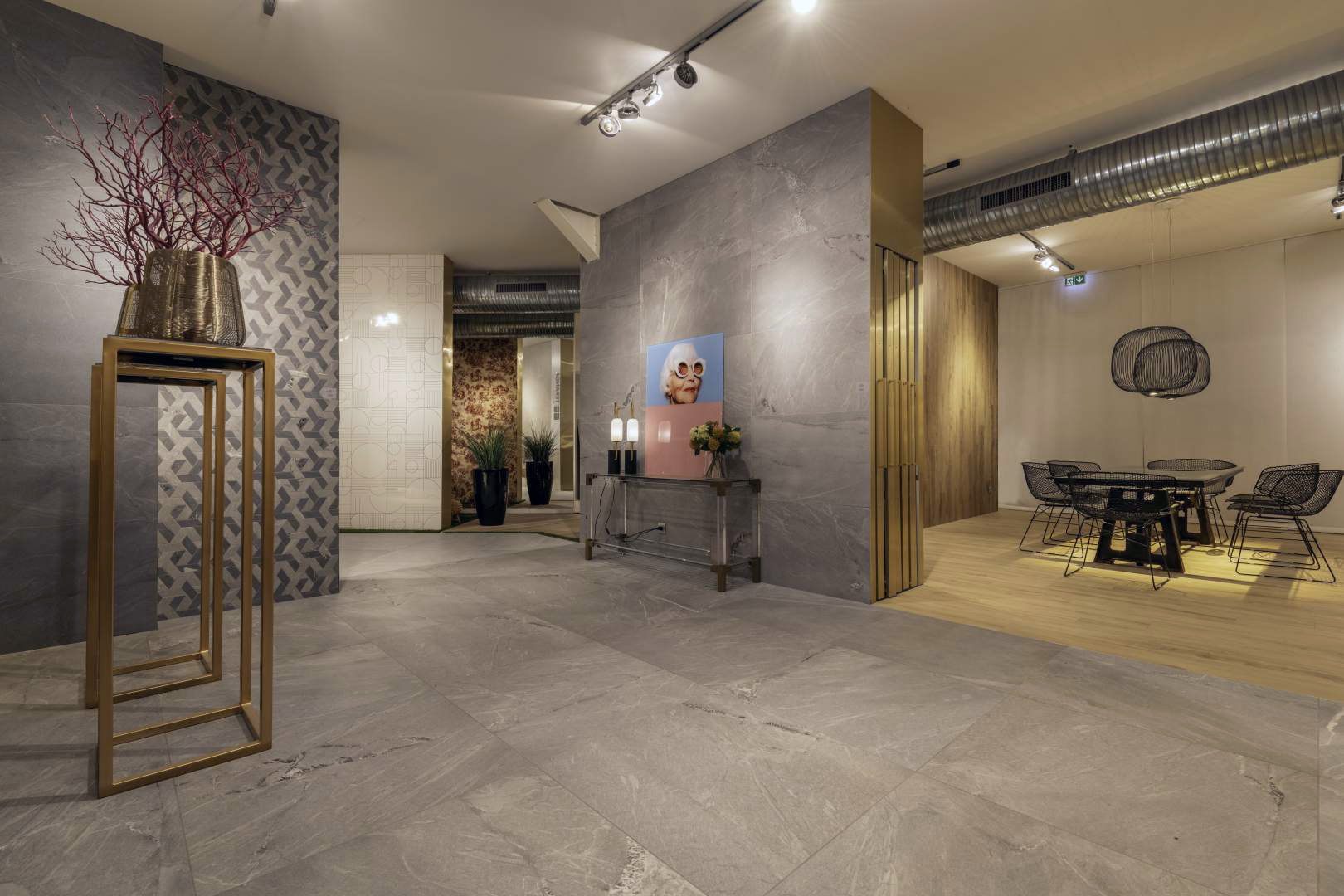 Showroom, auditorium e aule di formazione: un affascinante spazio polivalente dedicato al design e alla ceramica nel complesso produttivo di Saint Vallier-sur-Rhône.