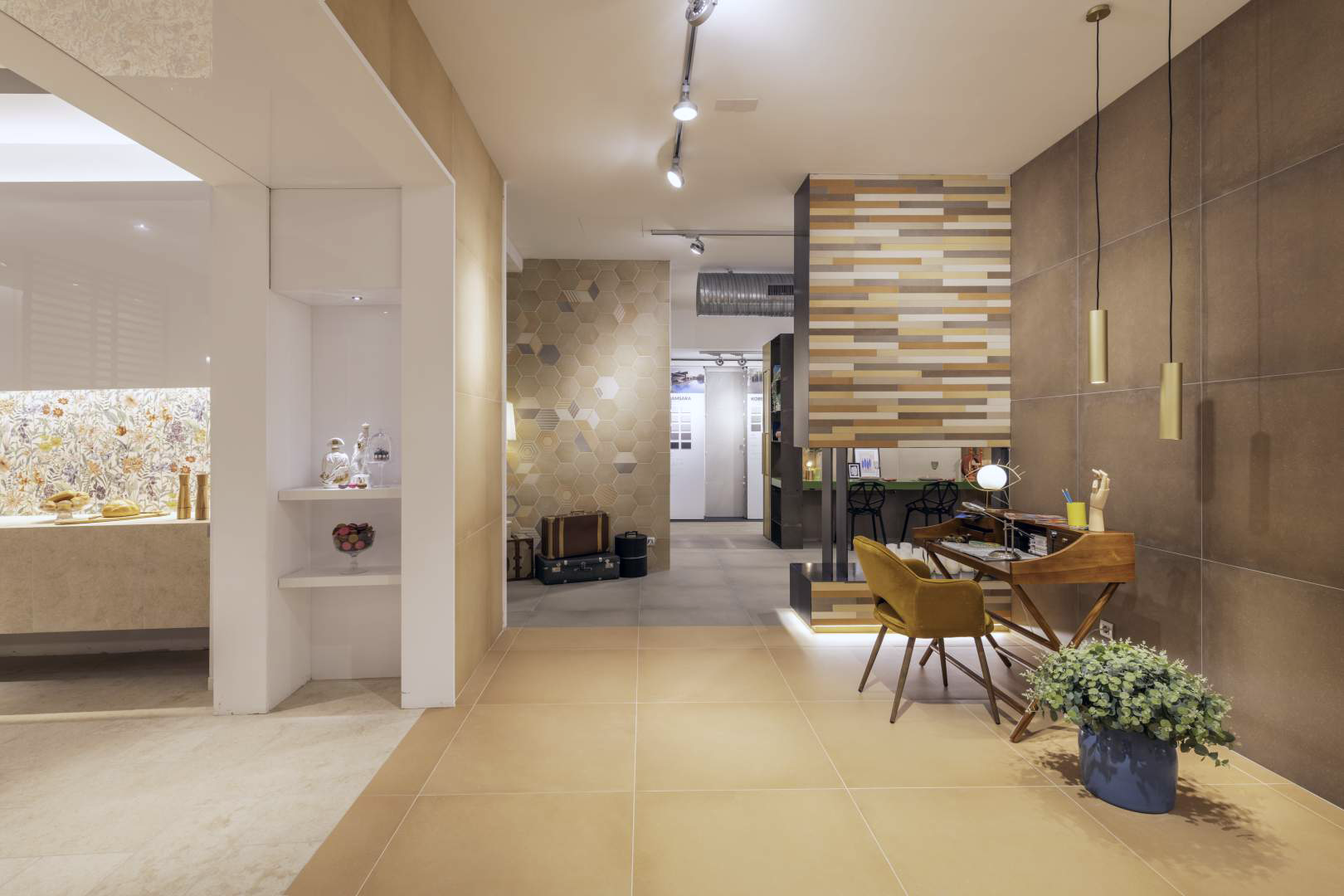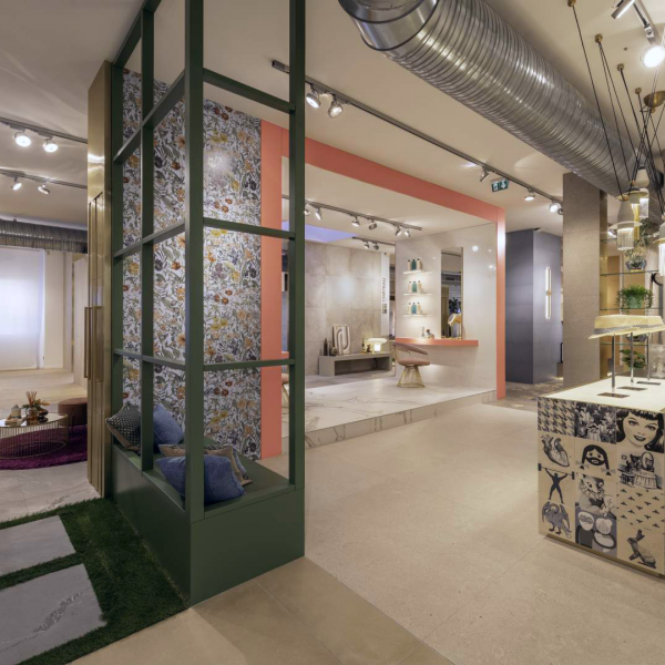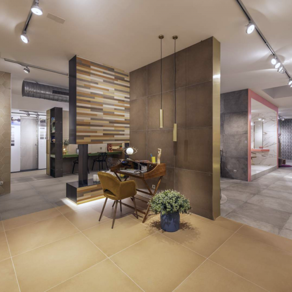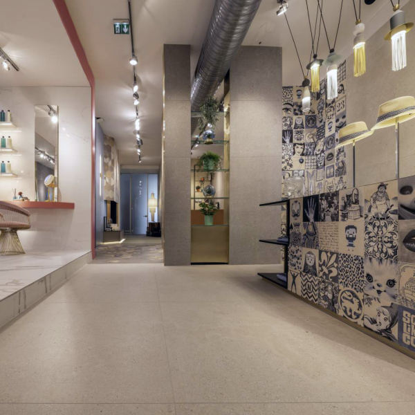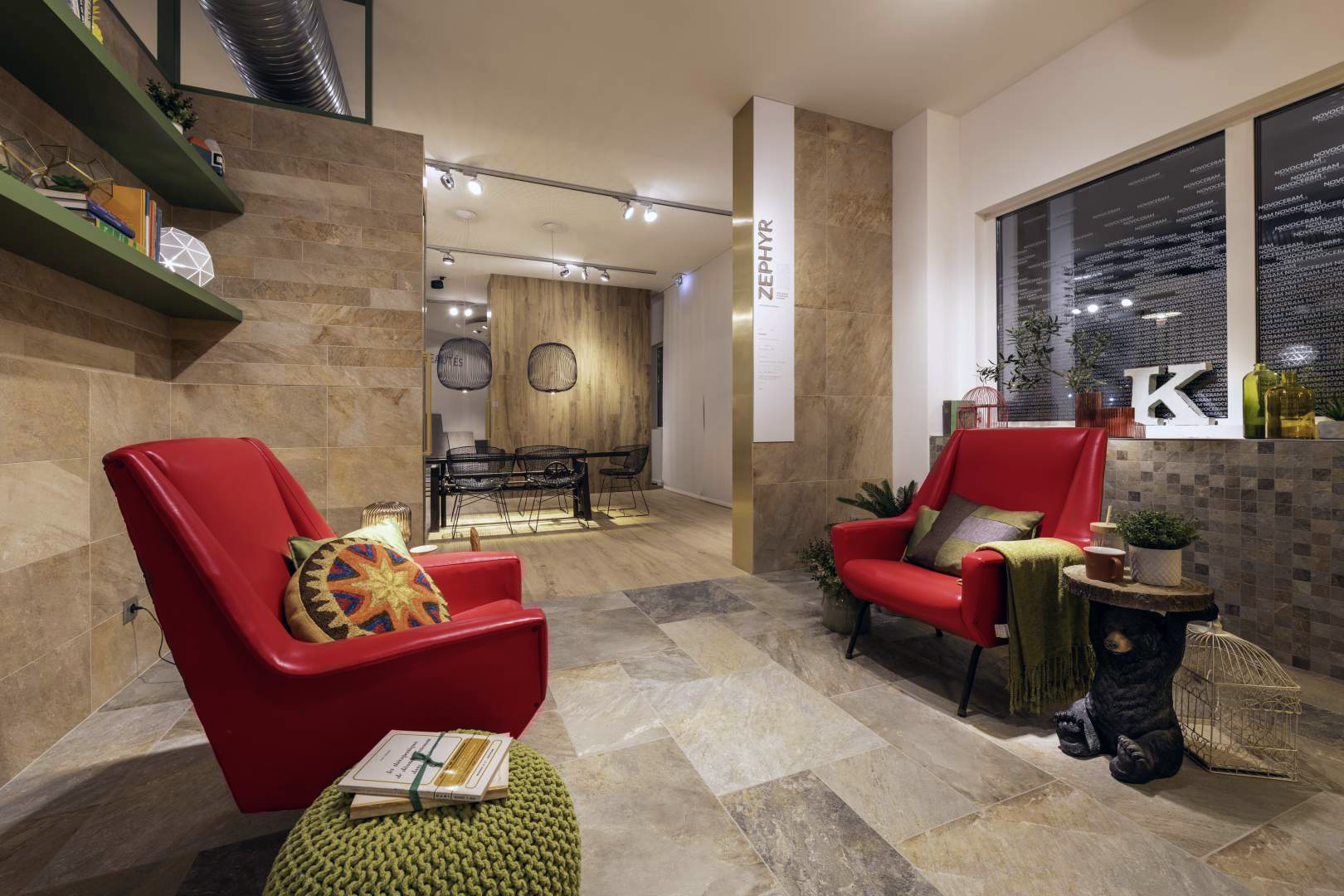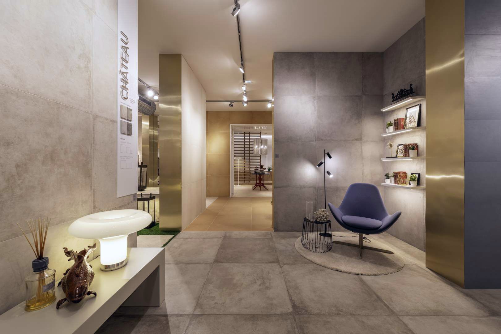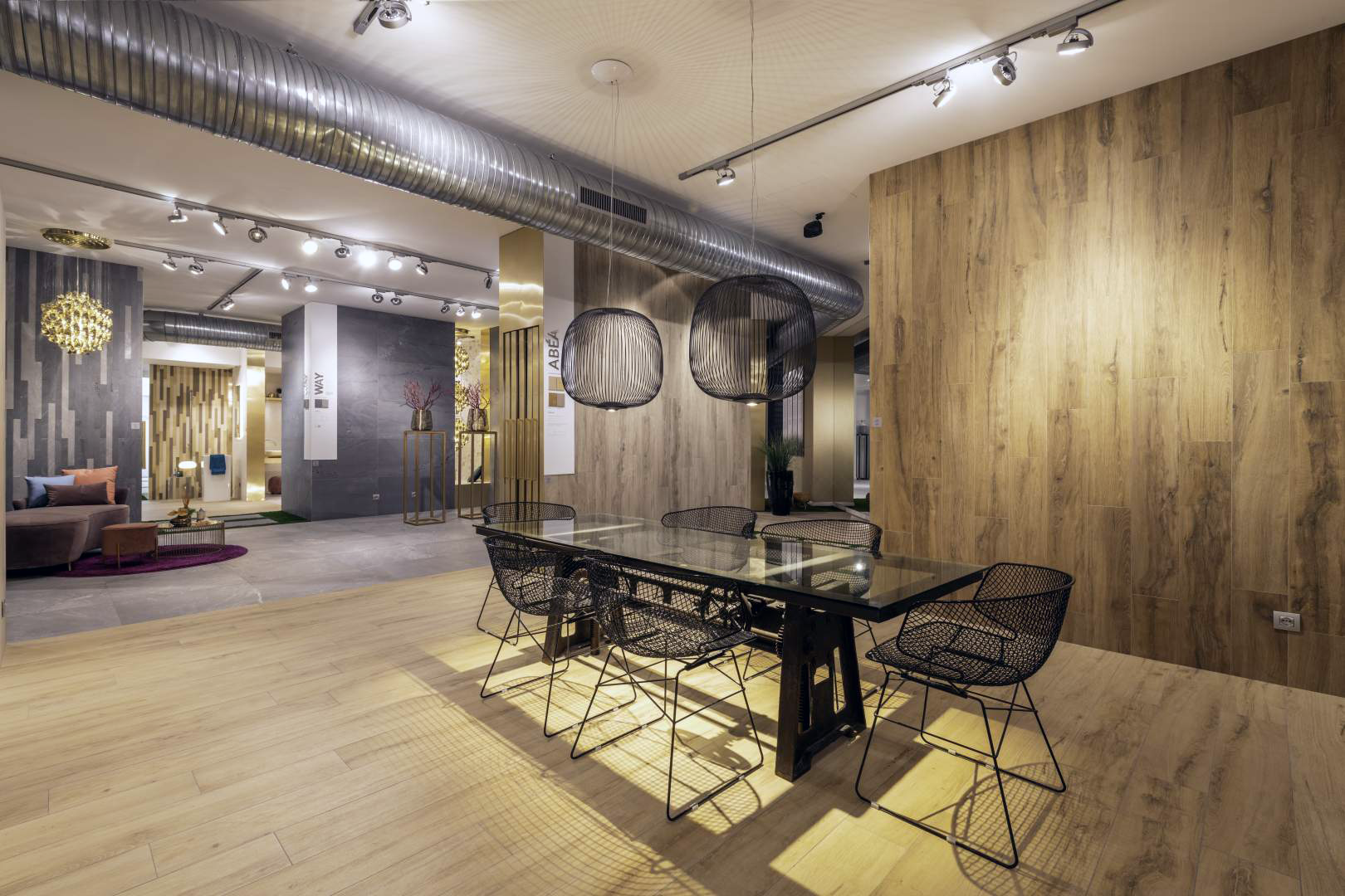 Showroom, auditorium e aule di formazione: un affascinante spazio polivalente dedicato al design e alla ceramica nel complesso produttivo di Saint Vallier-sur-Rhône.