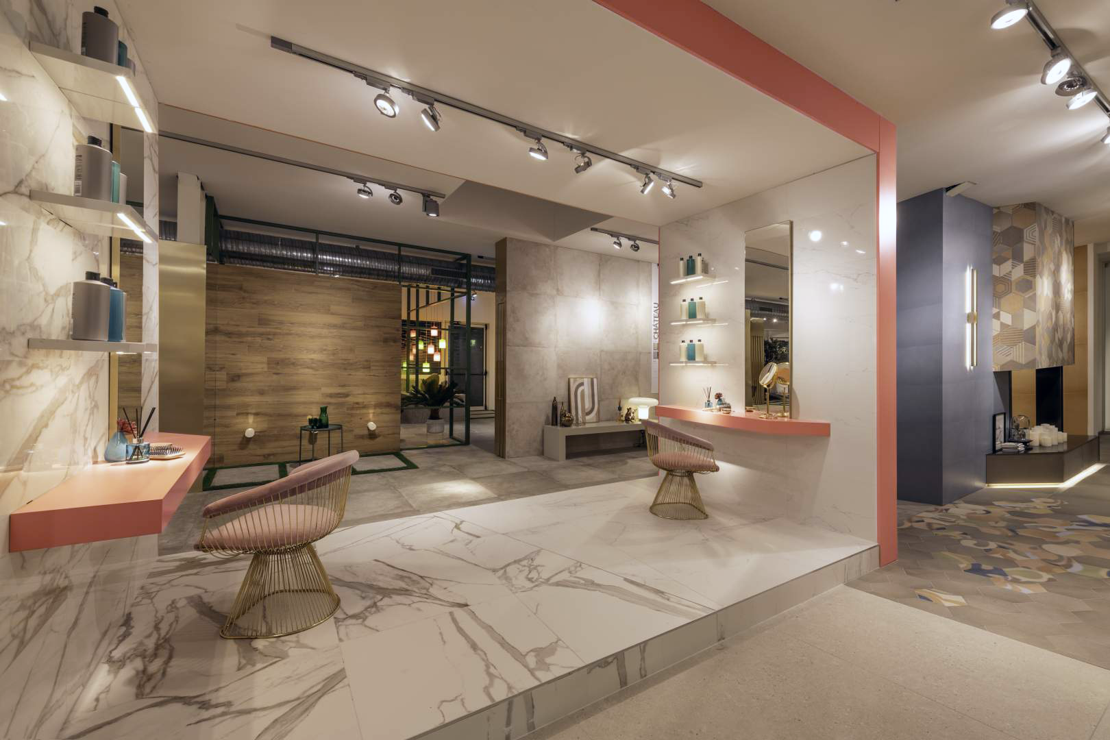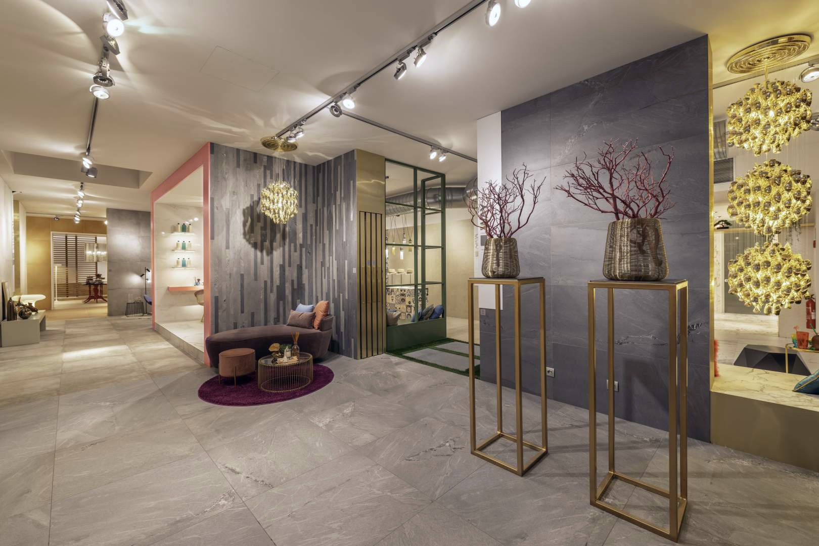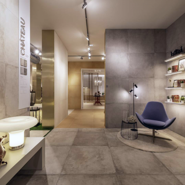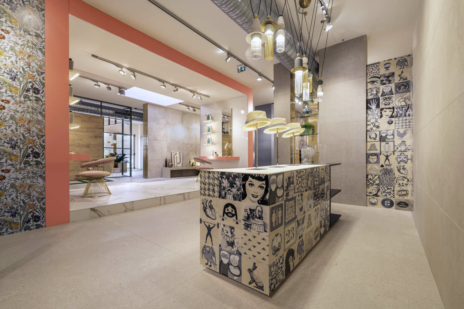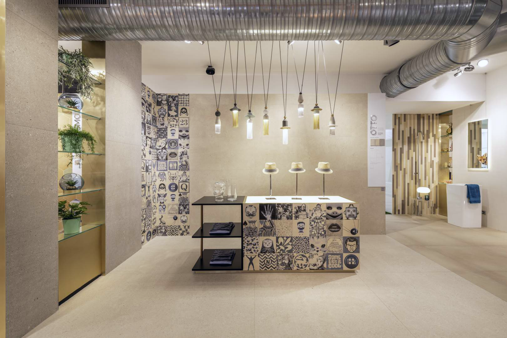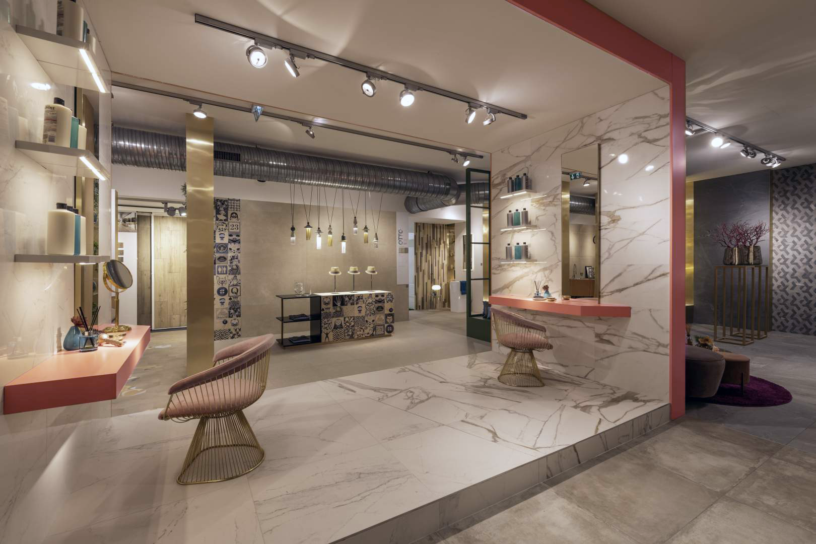 Showroom, auditorium e aule di formazione: un affascinante spazio polivalente dedicato al design e alla ceramica nel complesso produttivo di Saint Vallier-sur-Rhône.