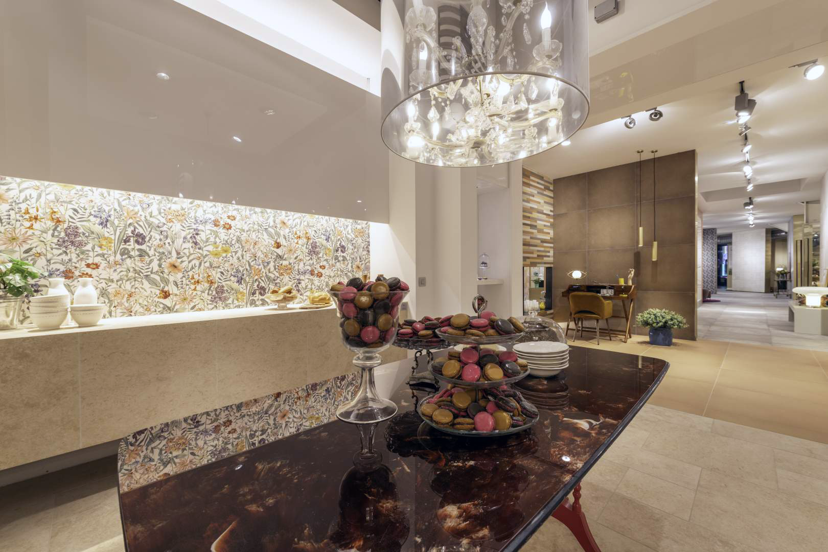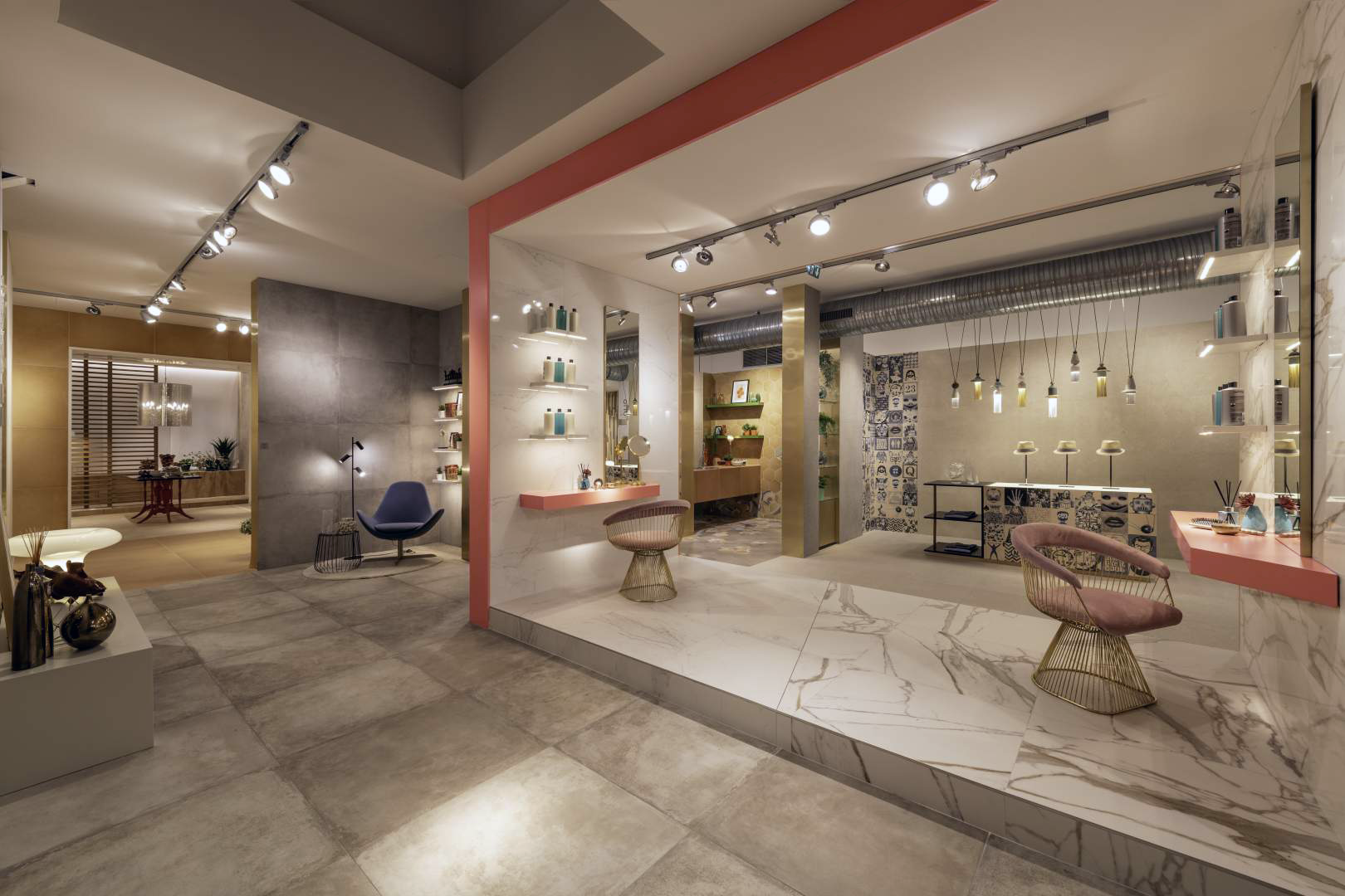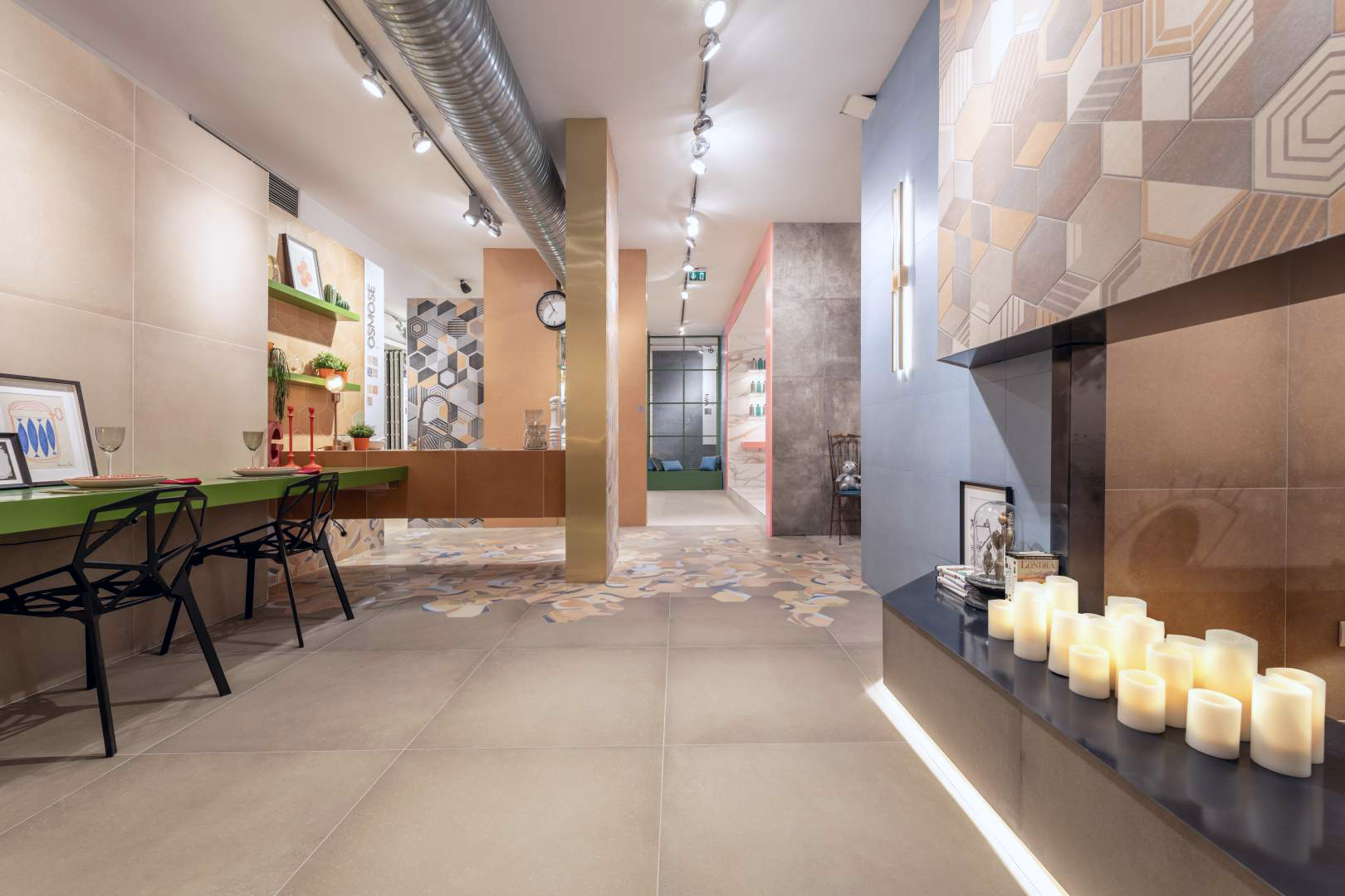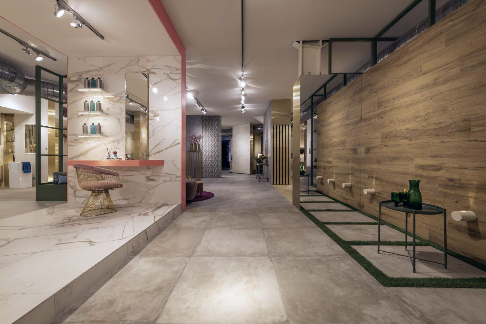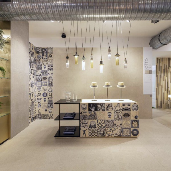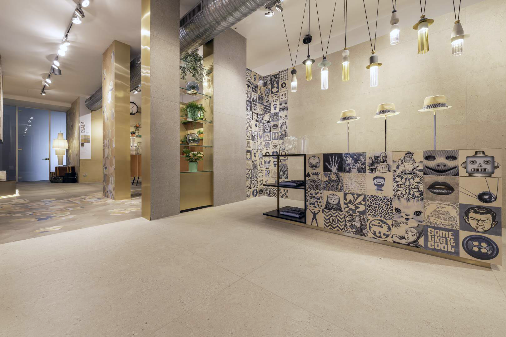 Showroom, auditorium e aule di formazione: un affascinante spazio polivalente dedicato al design e alla ceramica nel complesso produttivo di Saint Vallier-sur-Rhône.