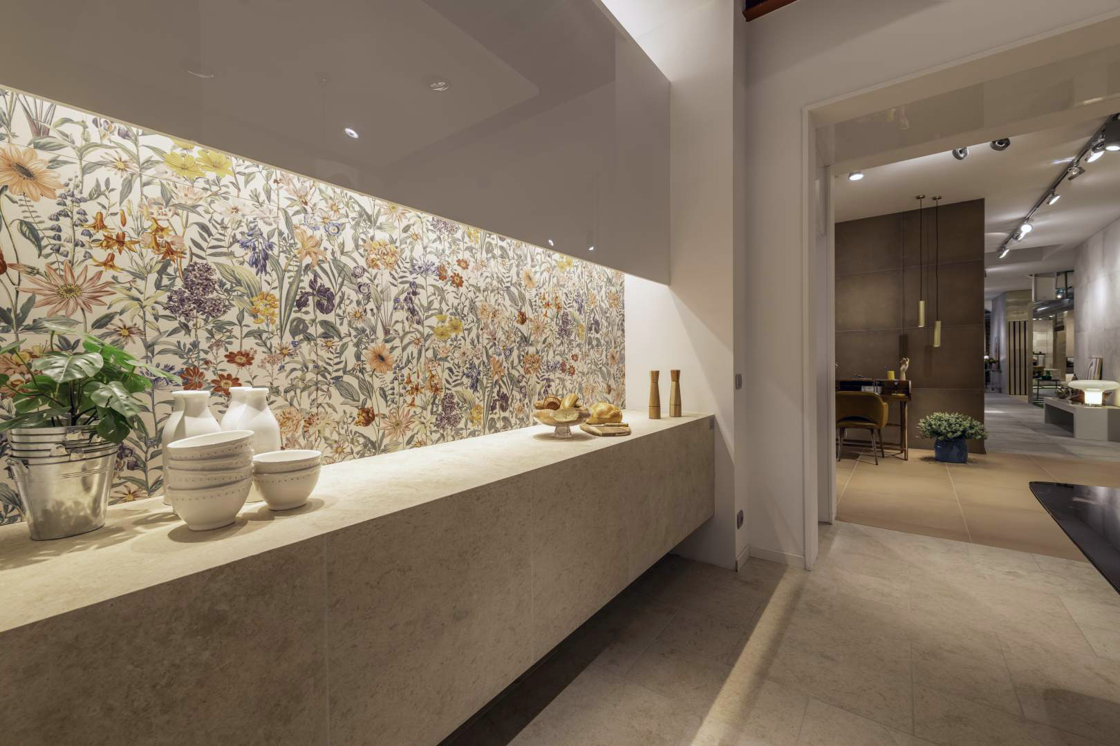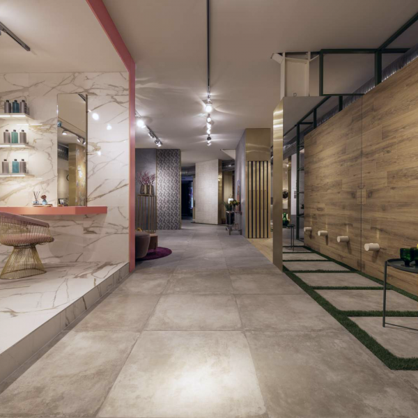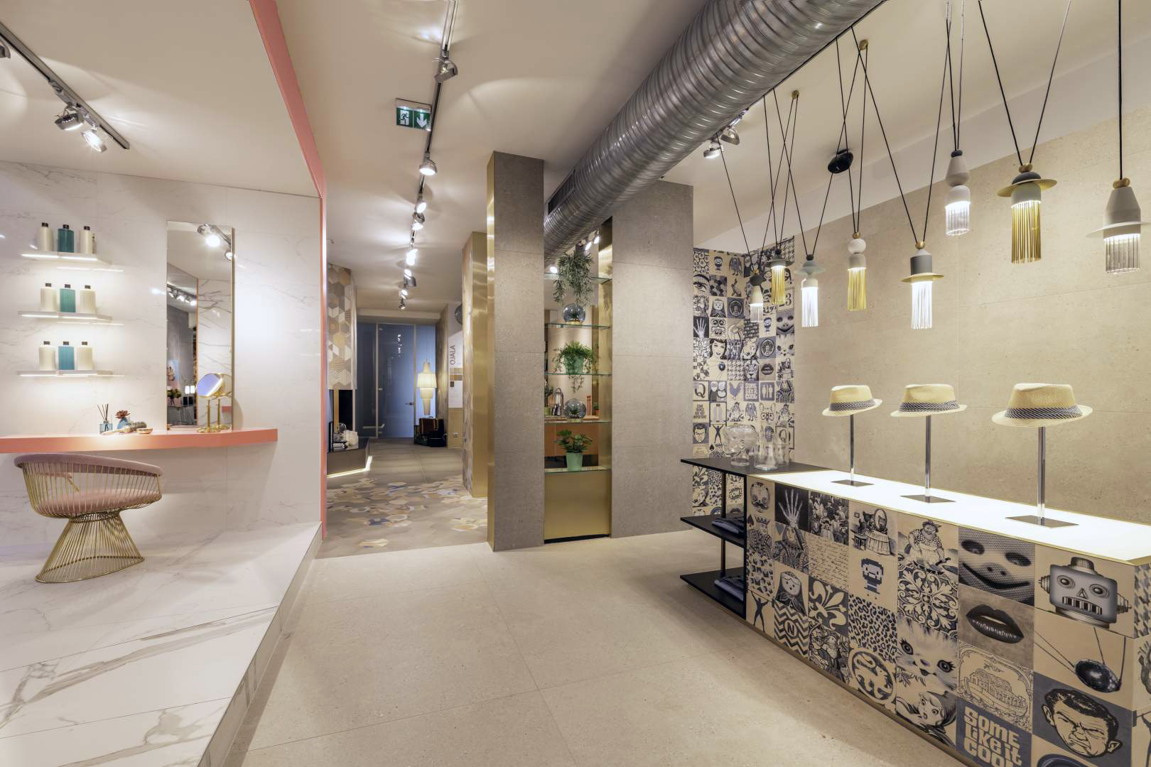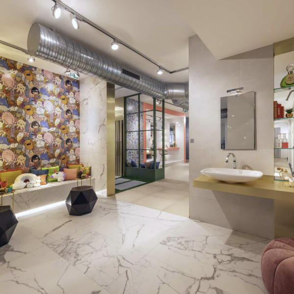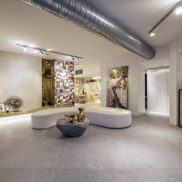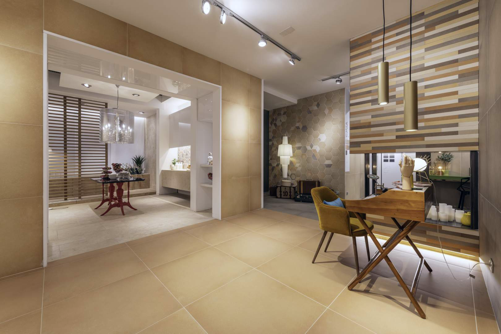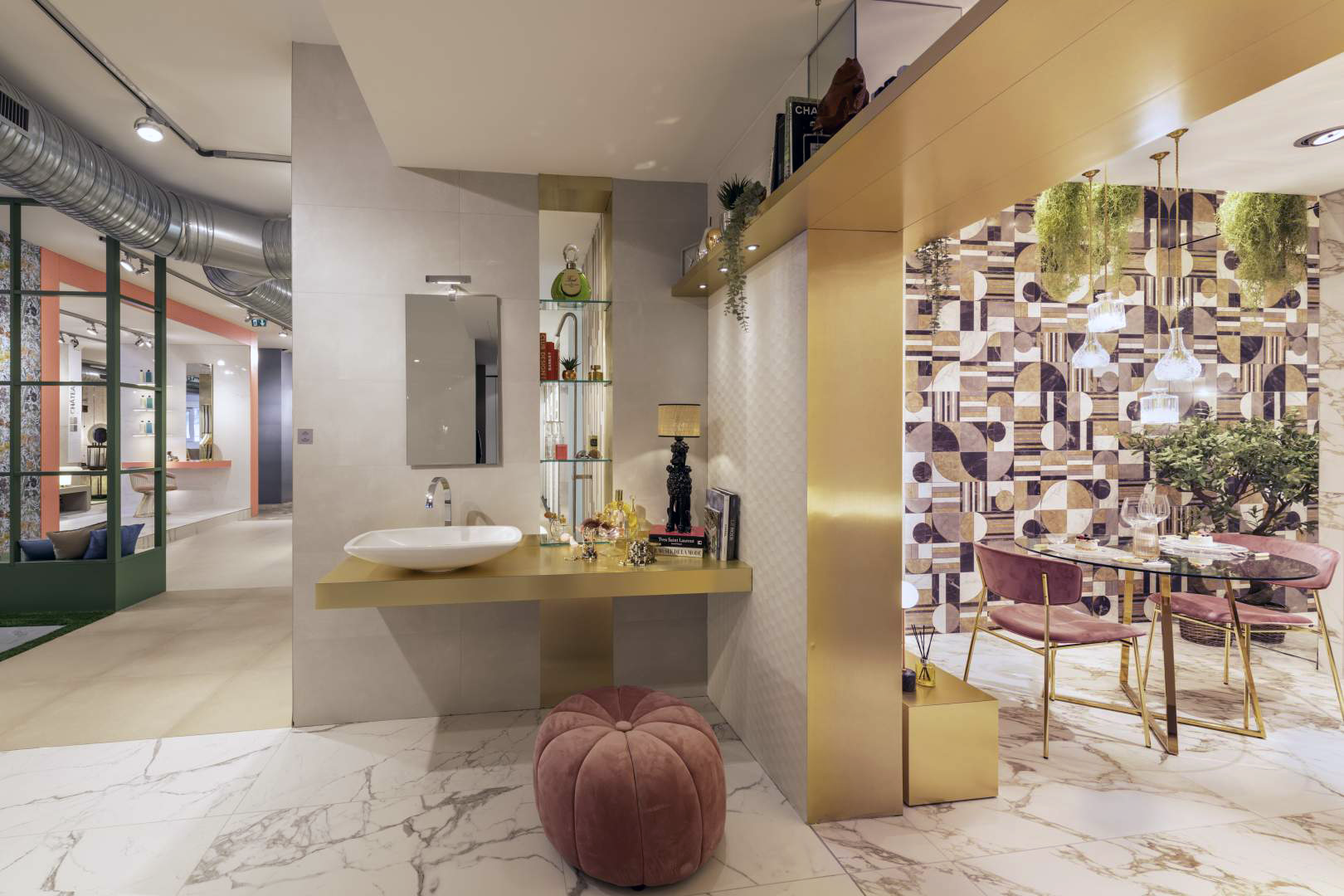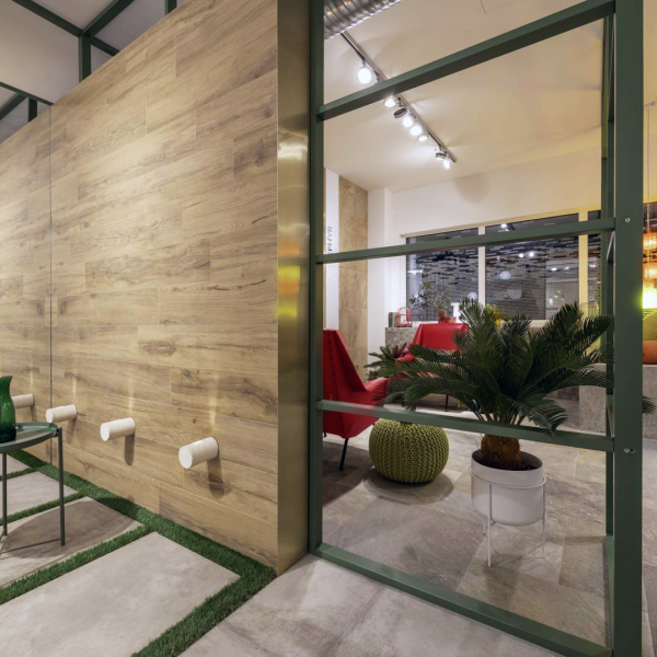 Showroom, auditorium e aule di formazione: un affascinante spazio polivalente dedicato al design e alla ceramica nel complesso produttivo di Saint Vallier-sur-Rhône.