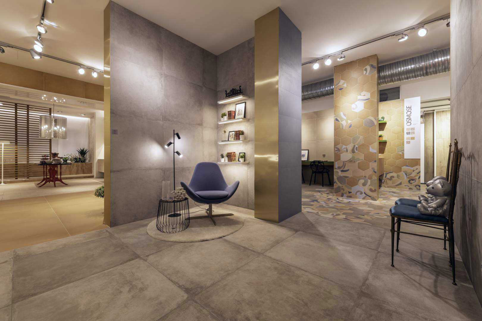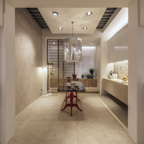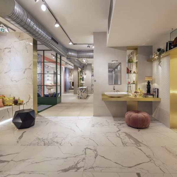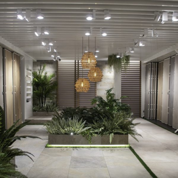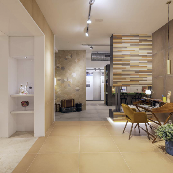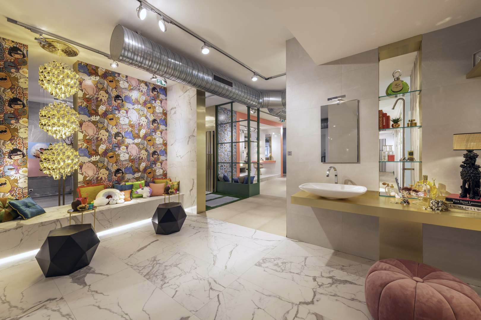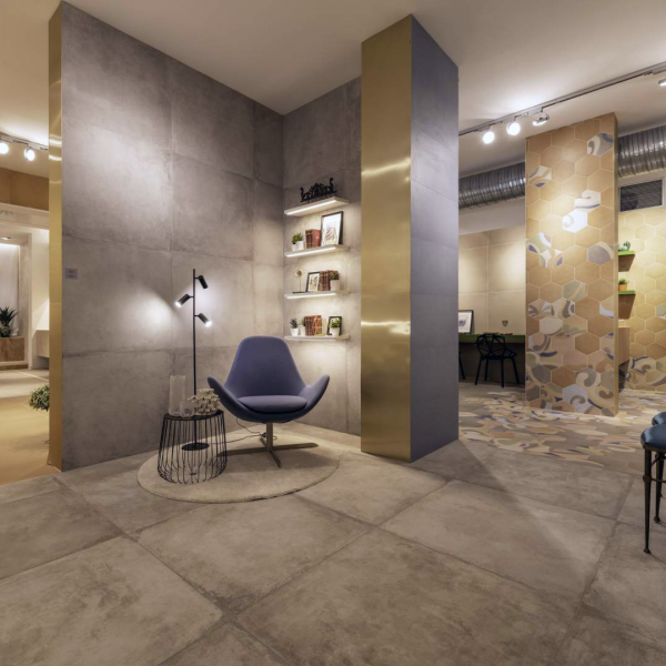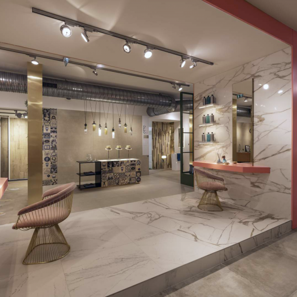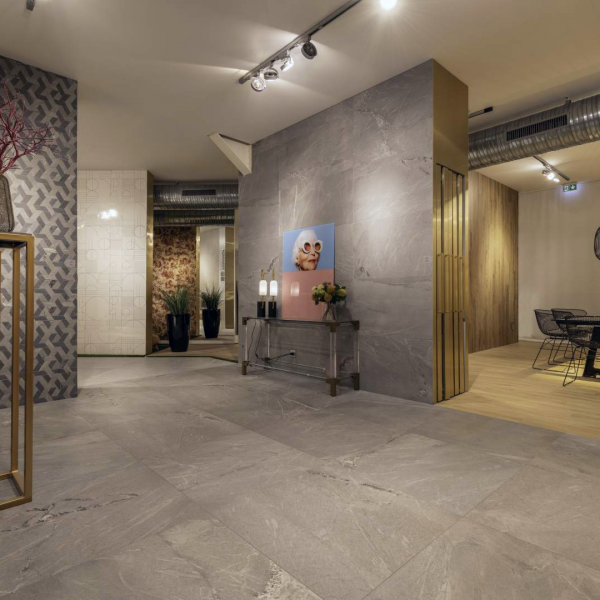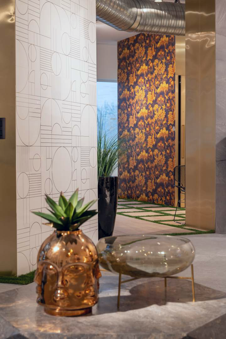 Showroom, auditorium e aule di formazione: un affascinante spazio polivalente dedicato al design e alla ceramica nel complesso produttivo di Saint Vallier-sur-Rhône.