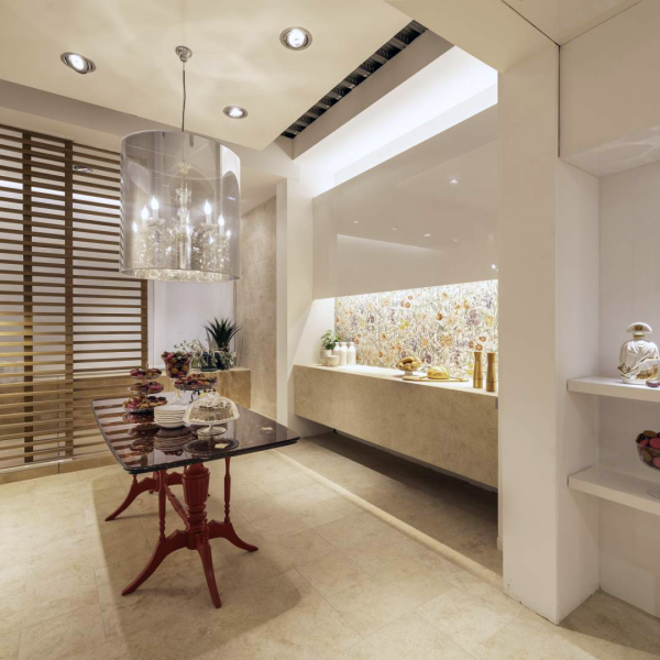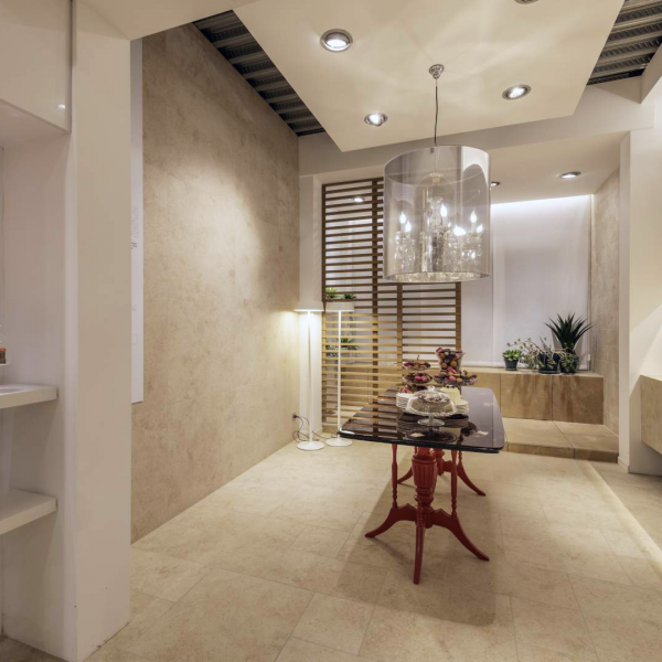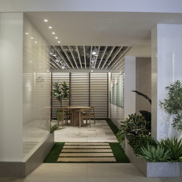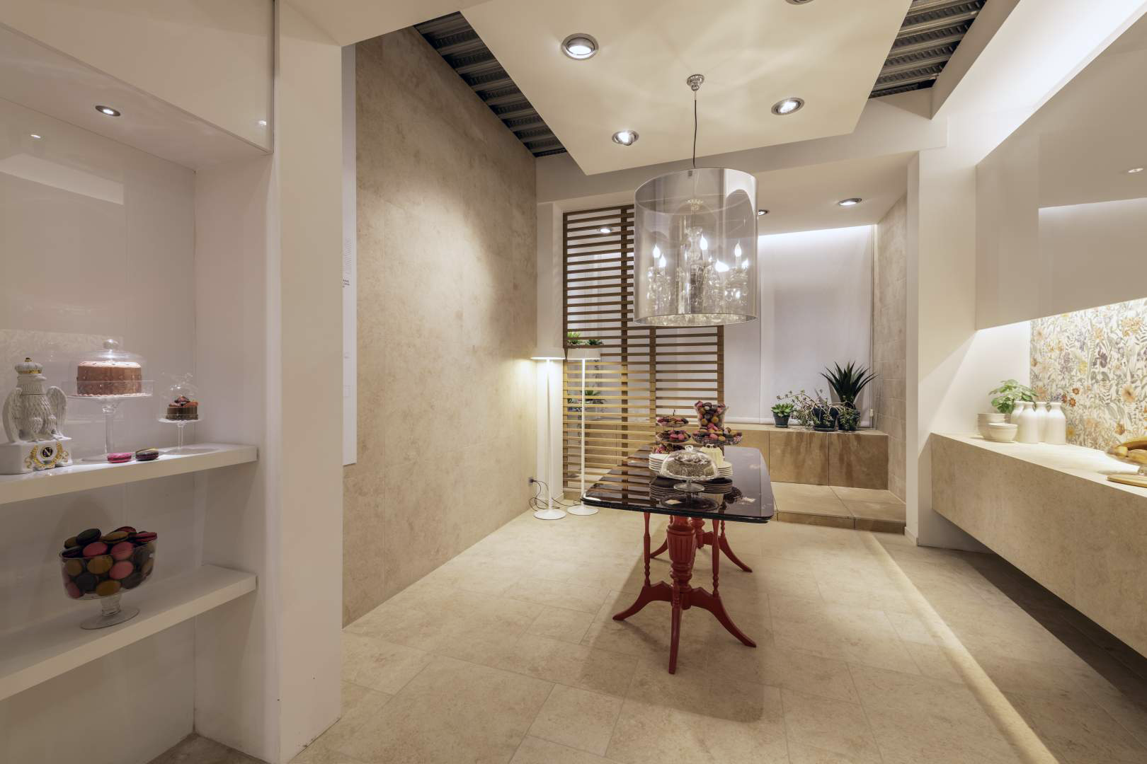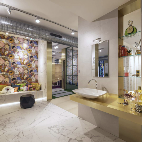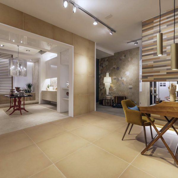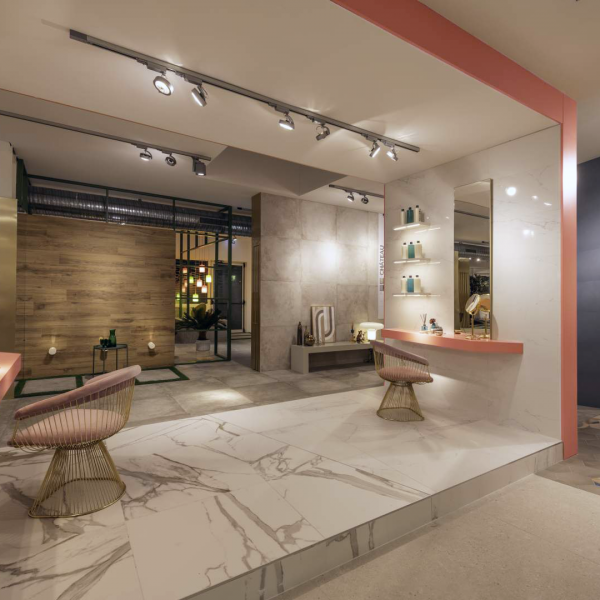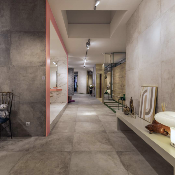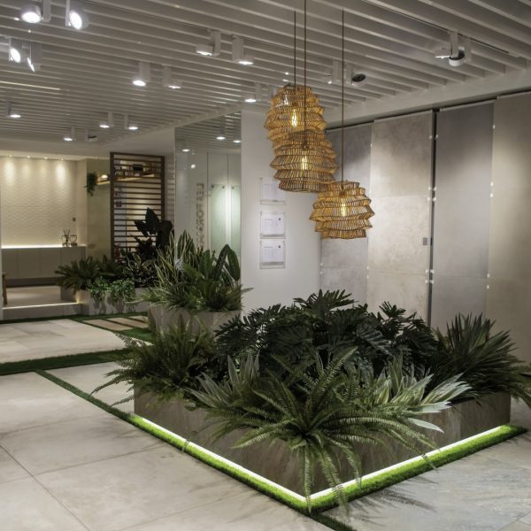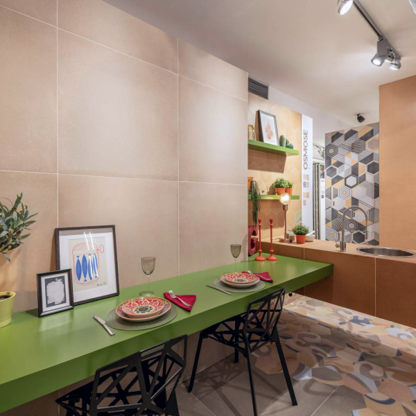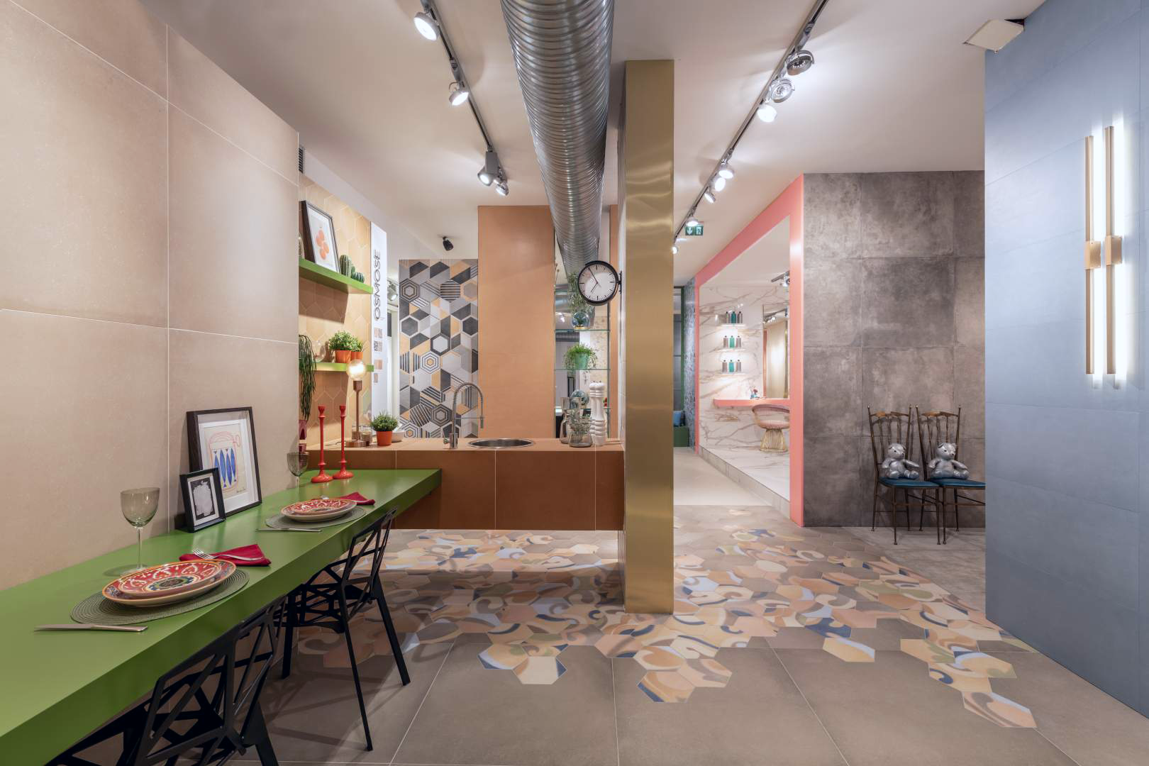 Showroom, auditorium e aule di formazione: un affascinante spazio polivalente dedicato al design e alla ceramica nel complesso produttivo di Saint Vallier-sur-Rhône.